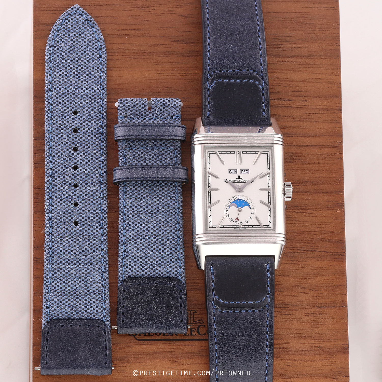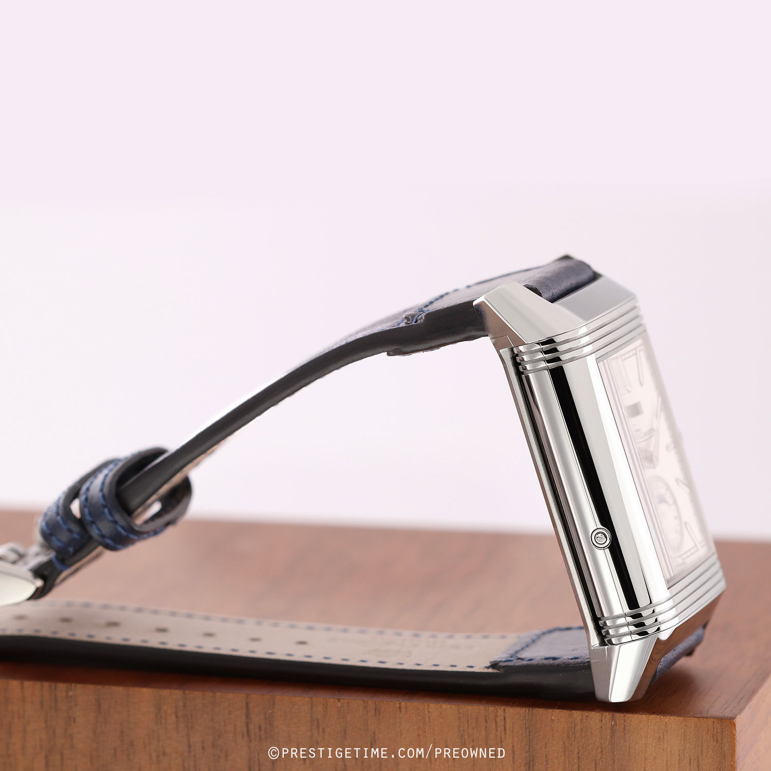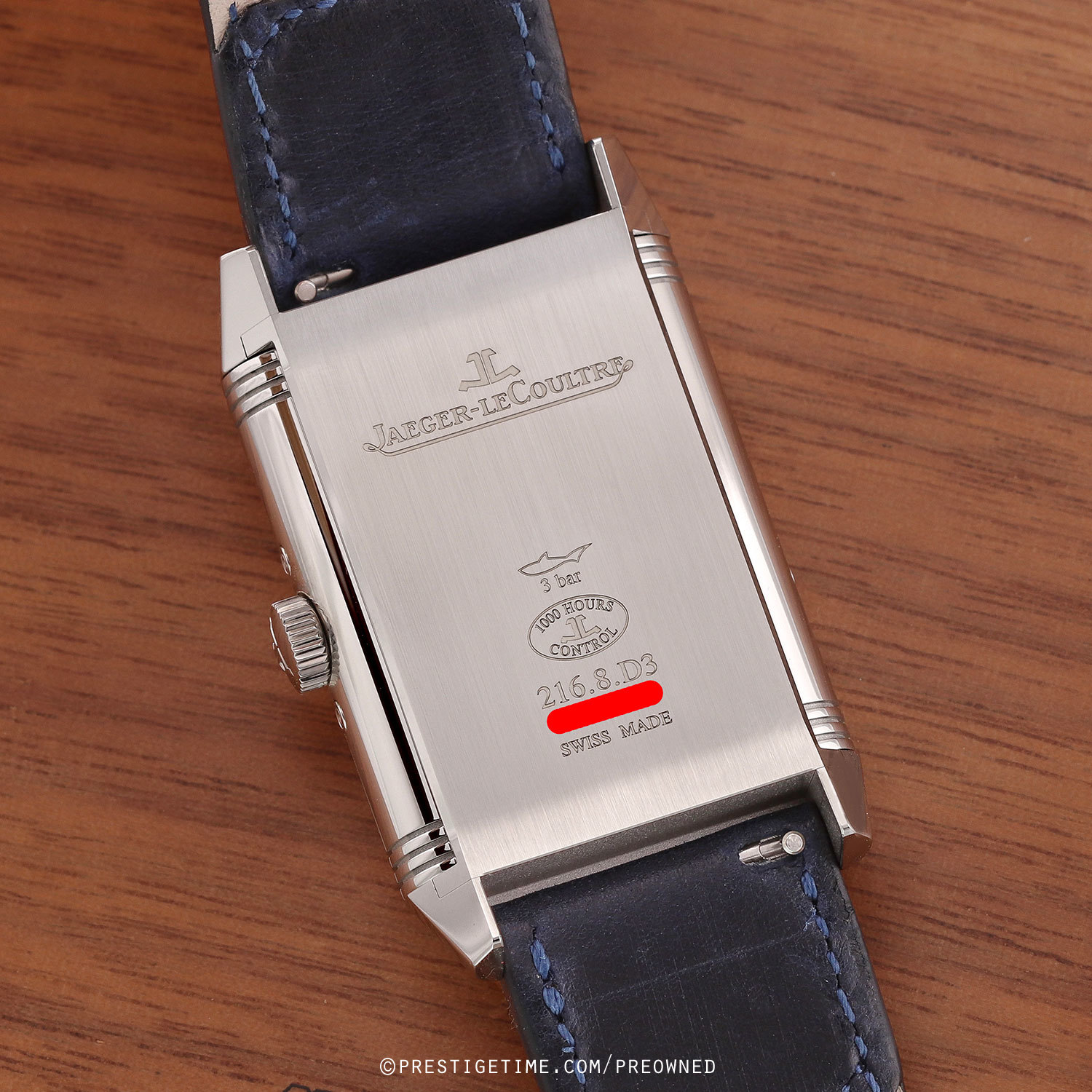 1. Fitted on its original Jaeger LeCoultre Casa Fagliano blue cordovan leather strap with a stainless steel deployant buckle. The strap is in excellent, near new condition with the majority of it wear lifespan remaining. We would be comfortable rating the strap as in 97%+ condition.