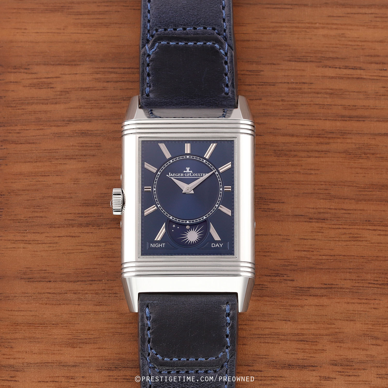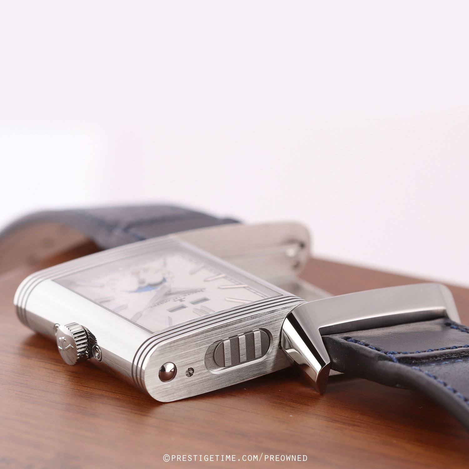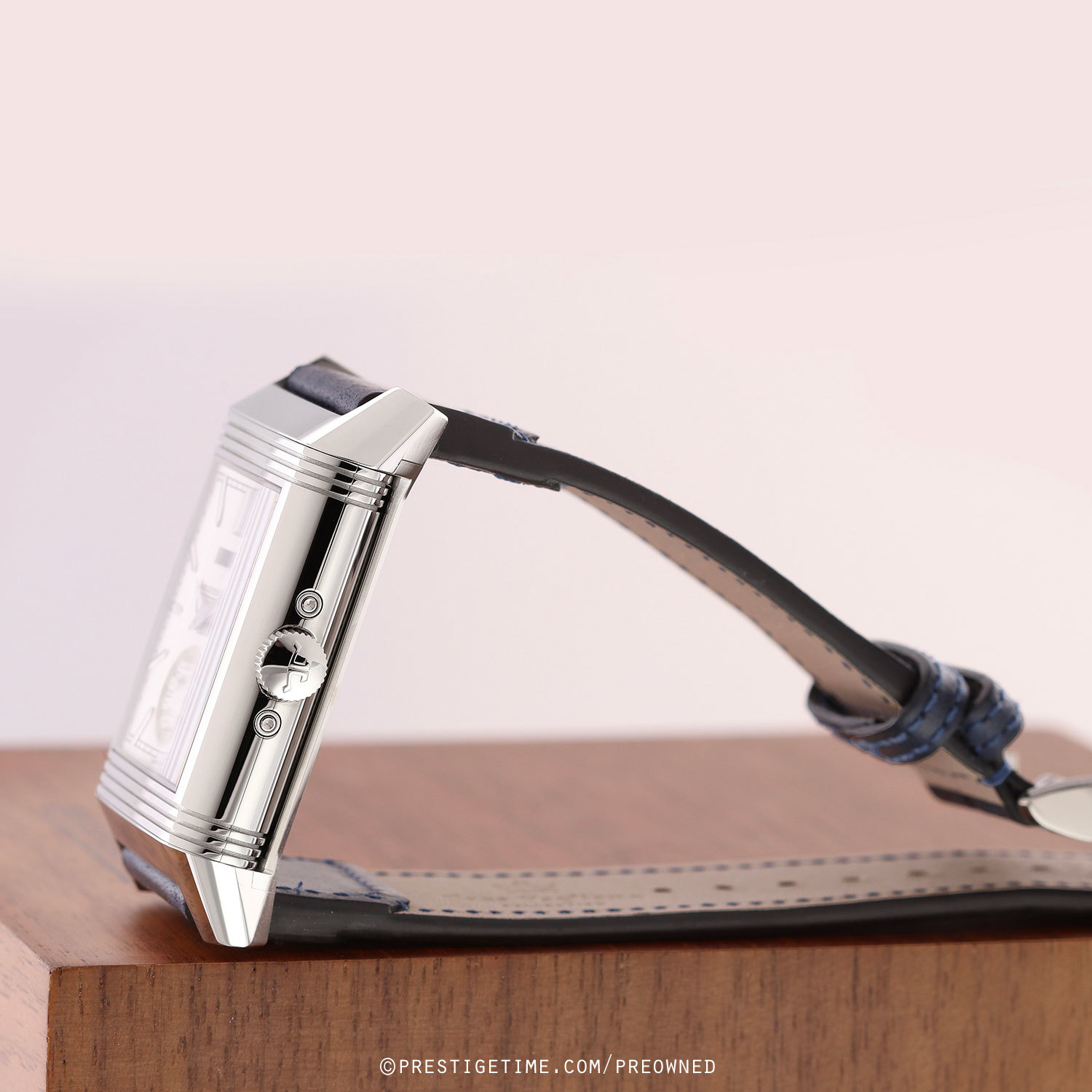 1. Fitted on its original Jaeger LeCoultre Casa Fagliano blue cordovan leather strap with a stainless steel deployant buckle. The strap is in excellent, near new condition with the majority of it wear lifespan remaining. We would be comfortable rating the strap as in 97%+ condition.