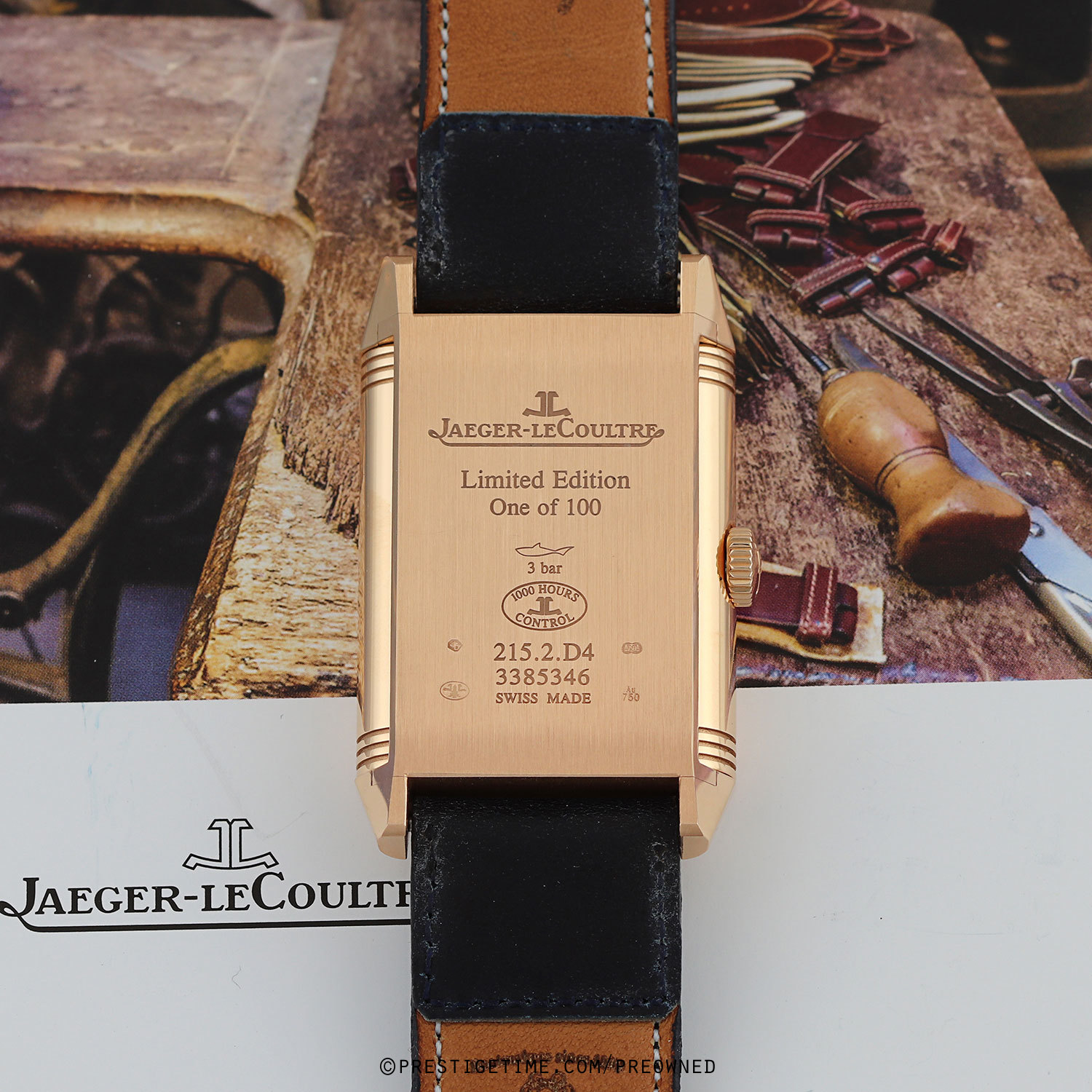 - Delivered with an addition JLC original blue alligator leather strap. The alligator strap was worn a handful of times at most and is in near-new condition, with its full wear lifespan remaining. We would rate this strap as in 98% condition.