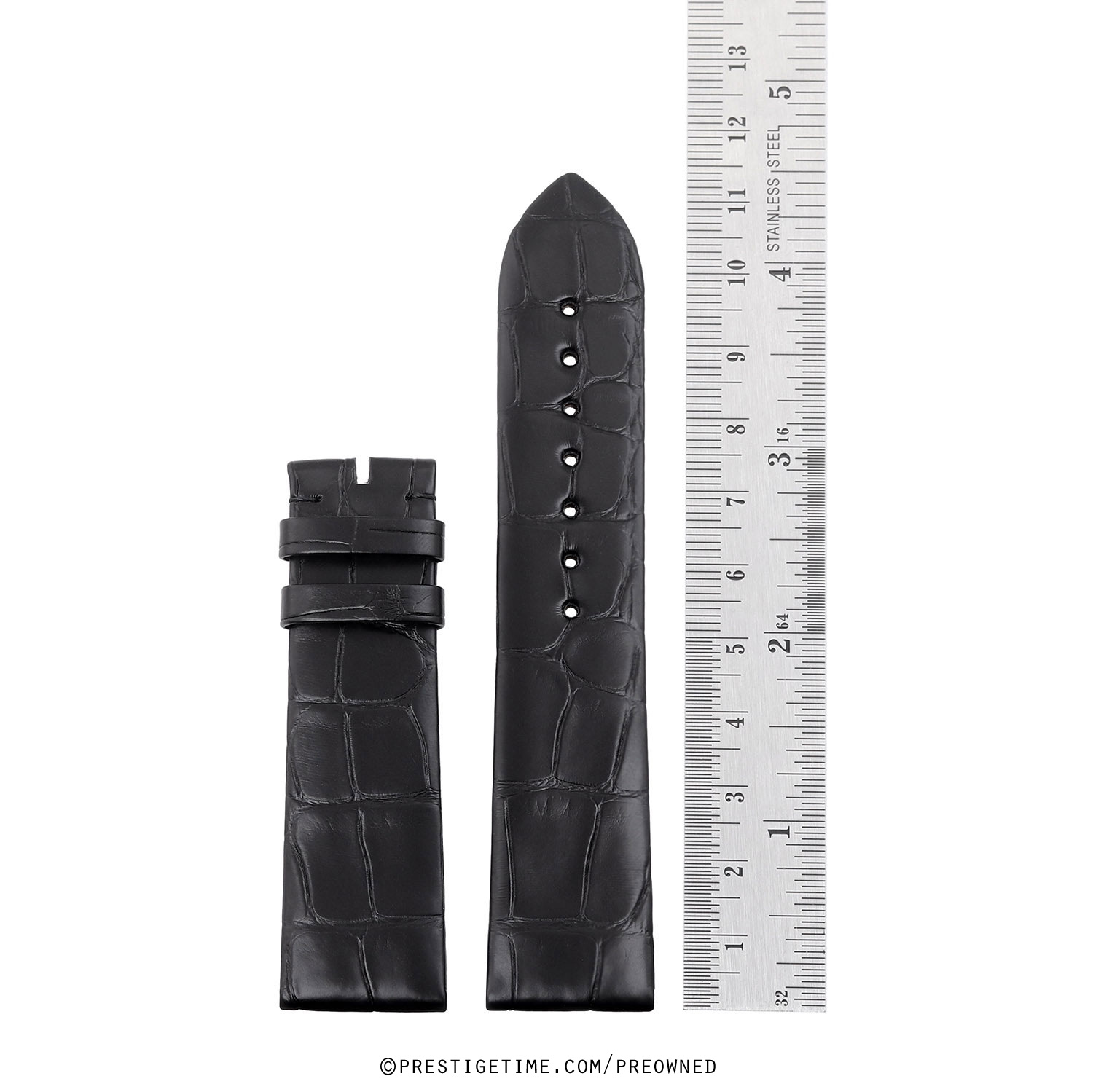 Genuine Jaquet Droz black alligator strap with rolled edges.