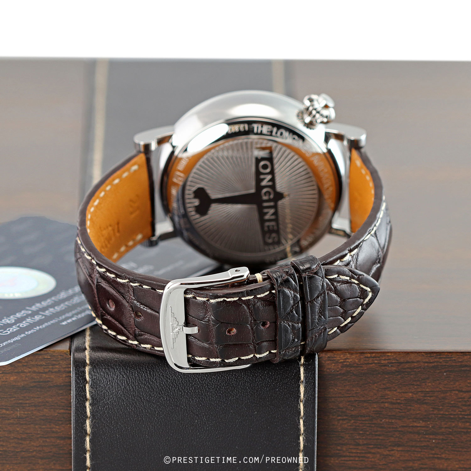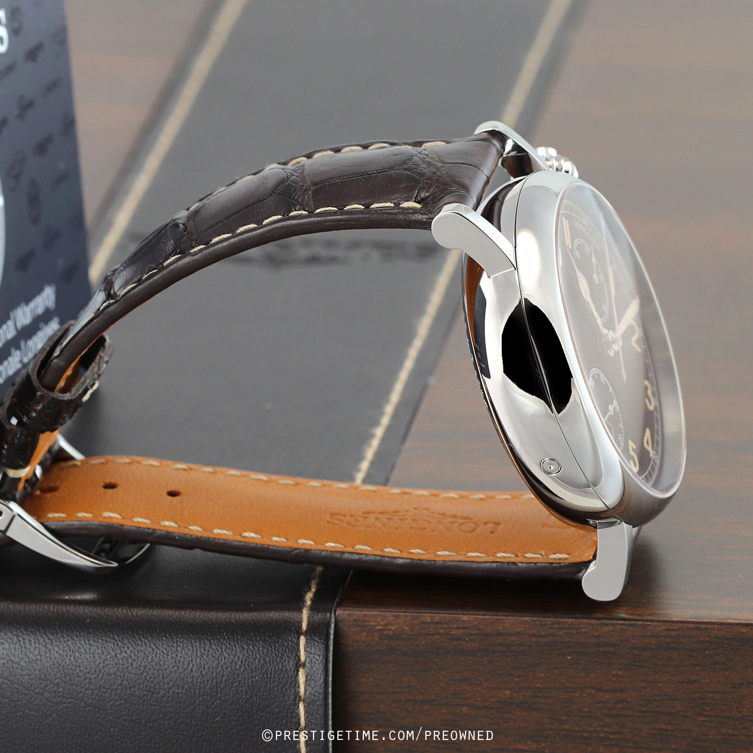 Strap: Fitted on its original Longines brown alligator leather strap with off-white stitching & a stainless steel tang buckle. The strap is in excellent near new condition with much of its wear lifespan remaining. We would grade this strap in 94%+ condition.