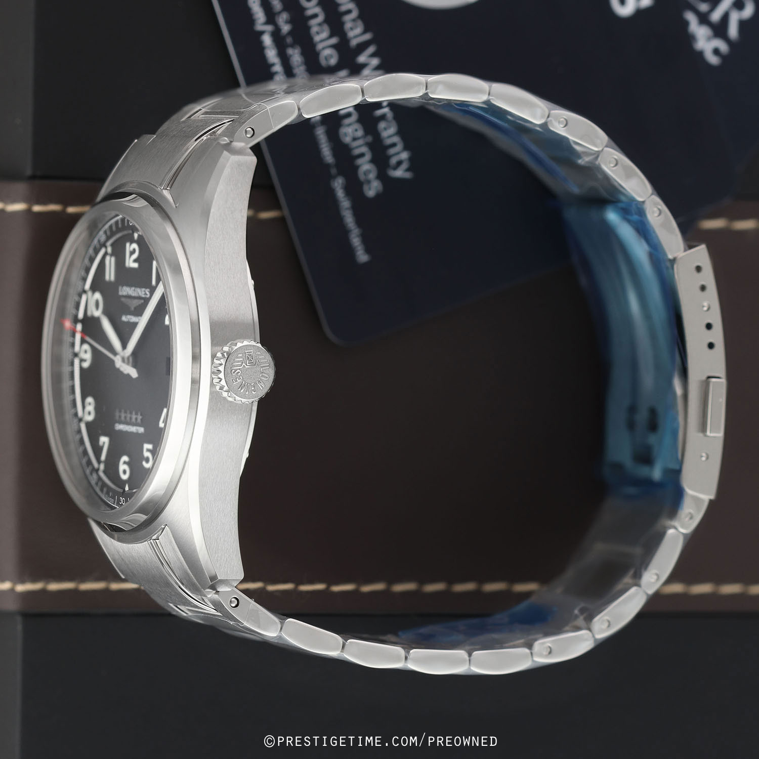 Movement: Powered by a COSC certified Longines caliber L888.4 (base ETA A31.L11), features a silicon balance spring, beats at 25,200 vph (3.5Hz), contains 21 jewels & has a power reserve of +/- 72 hours.