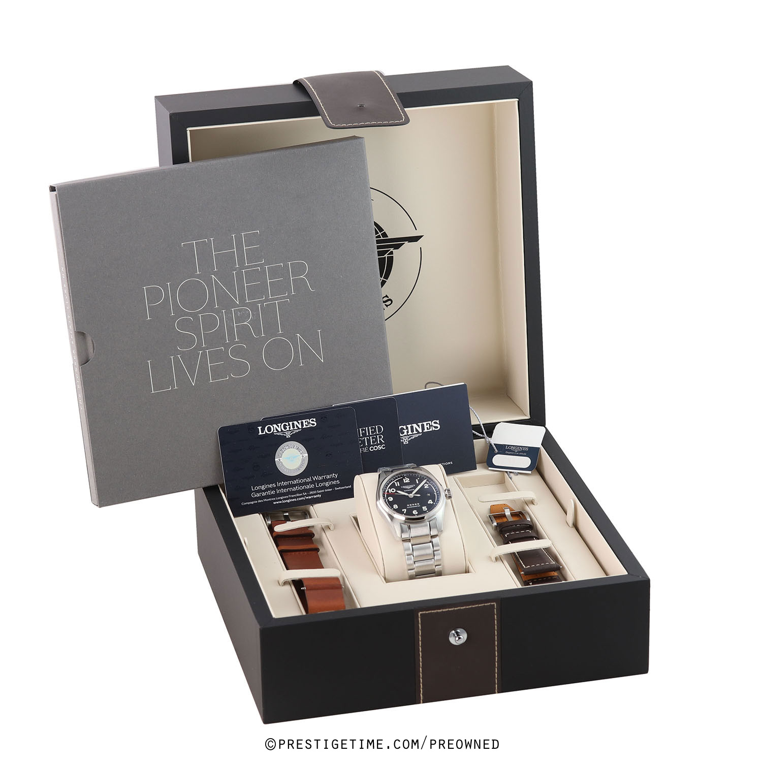 - An additional Longines original honey brown calfskin NATO style strap with a stainless steel tang buckle. This strap is brand new & unworn with its full wear lifespan remaining.