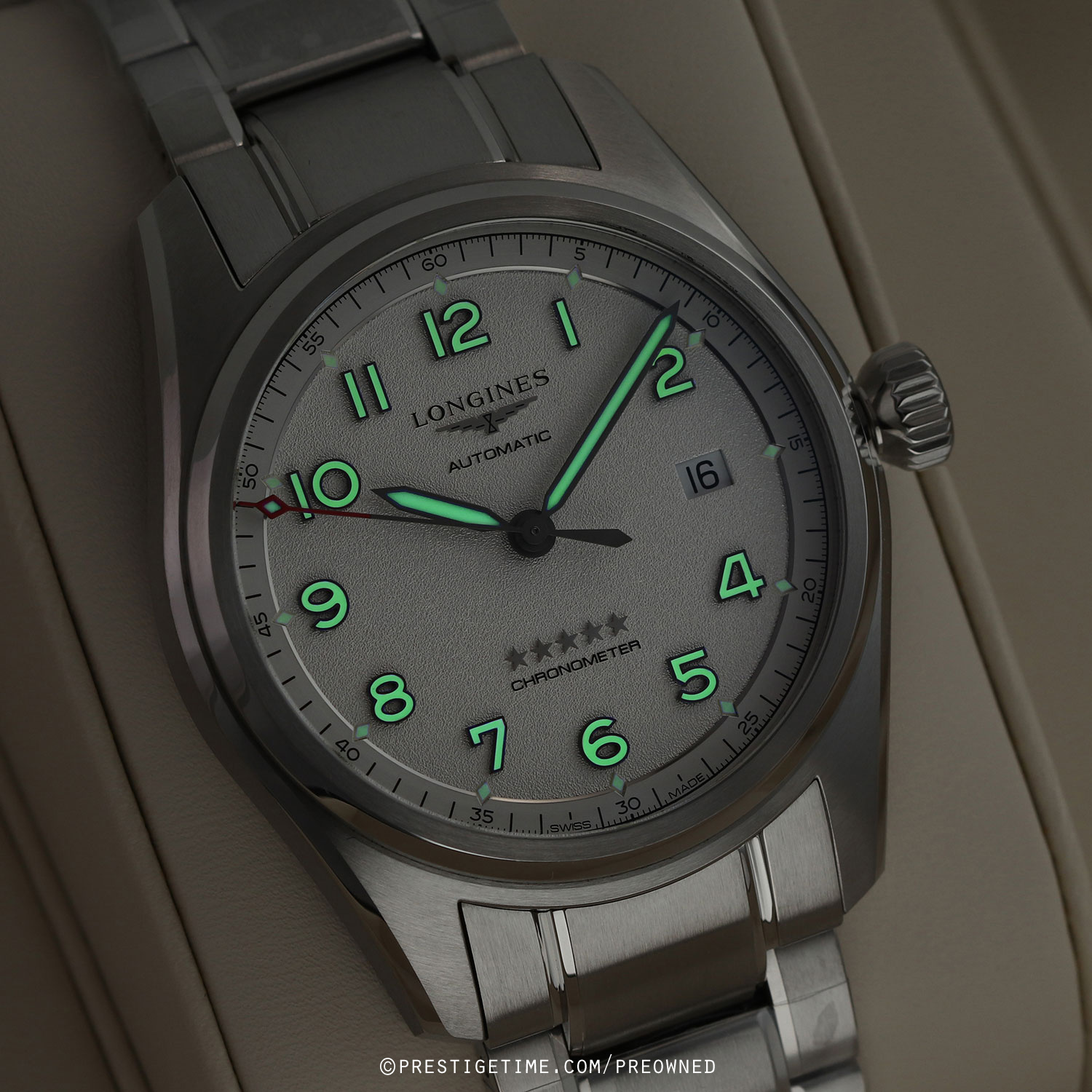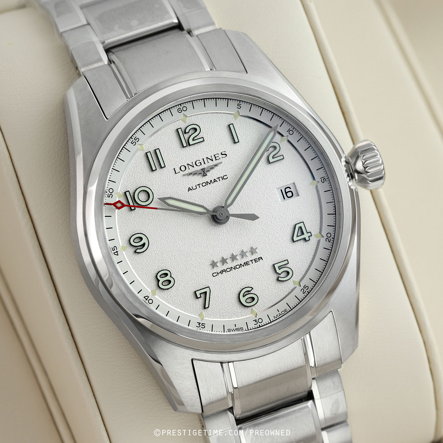 Movement: Powered by a COSC certified Longines caliber L888.4 (base ETA A31.L11), features a silicon balance spring, beats at 25,200 vph (3.5Hz), contains 21 jewels & has a power reserve of +/- 72 hours.