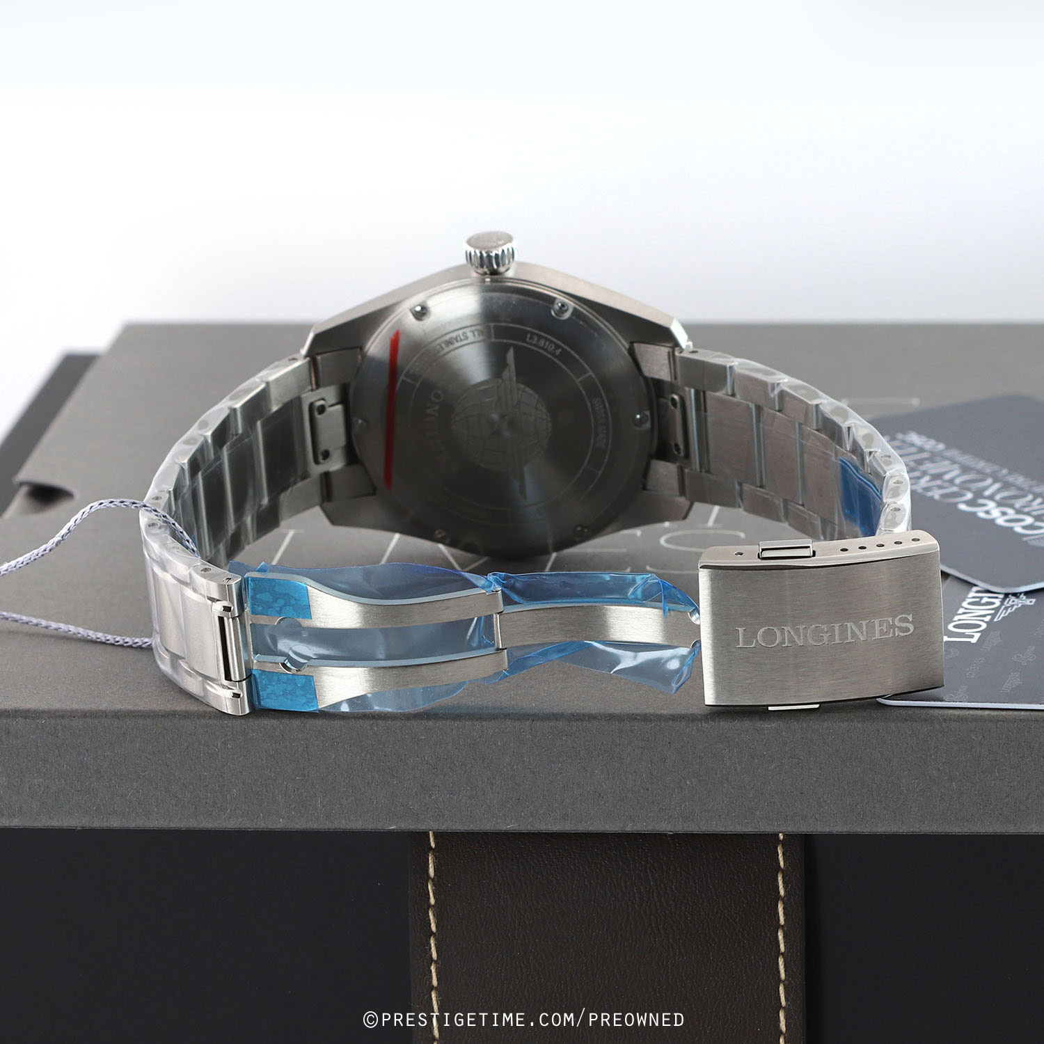 Movement: Powered by a COSC certified Longines caliber L888.4 (base ETA A31.L11), features a silicon balance spring, beats at 25,200 vph (3.5Hz), contains 21 jewels & has a power reserve of +/- 72 hours.