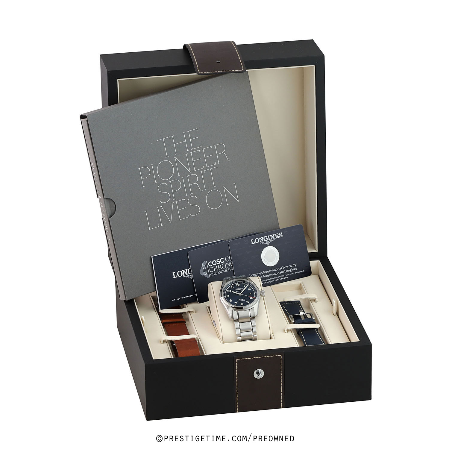 - An additional Longines original blue calfskin leather strap with contrasting white stitching & a stainless steel tang buckle. This strap is brand new & unworn with its full wear lifespan remaining.