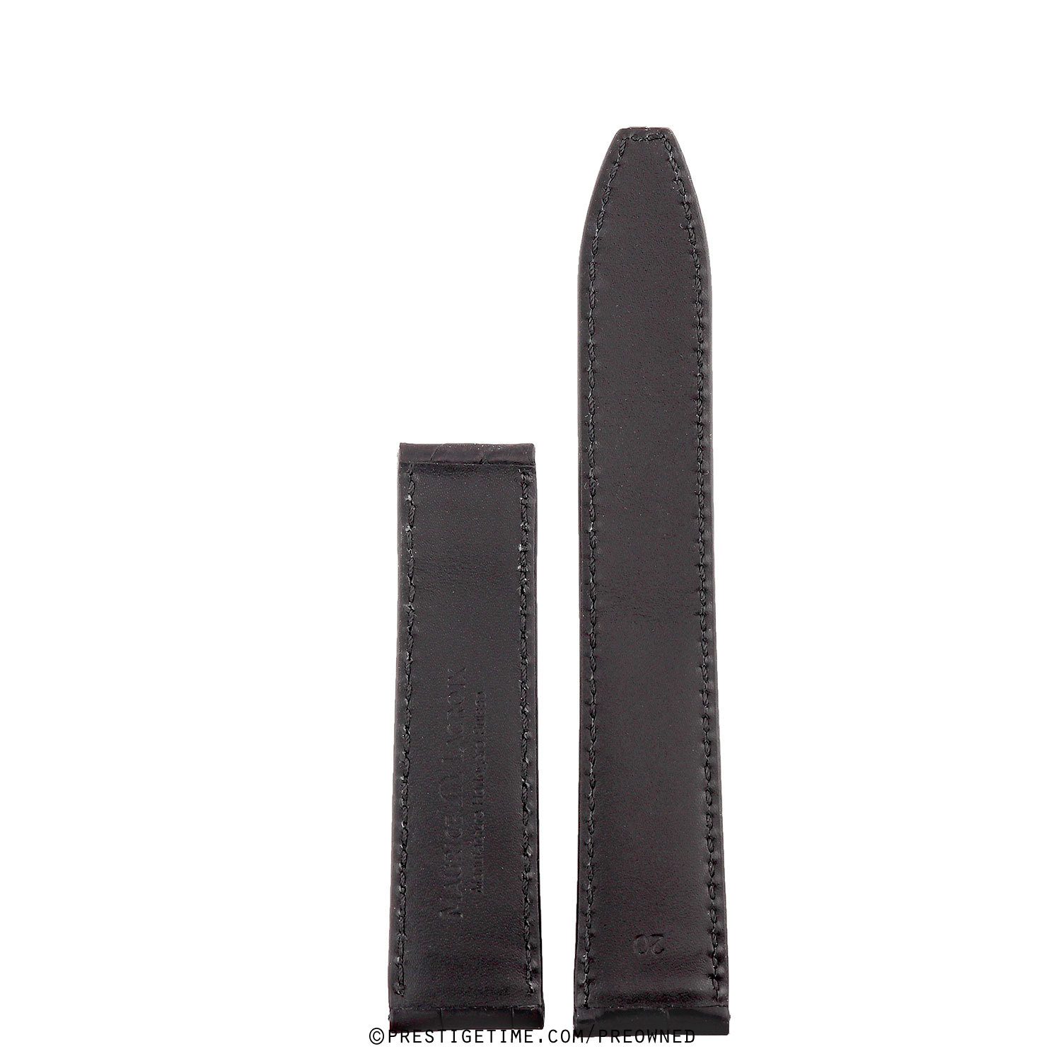 Genuine Maurice Lacroix black stitched alligator strap for deployant buckle.