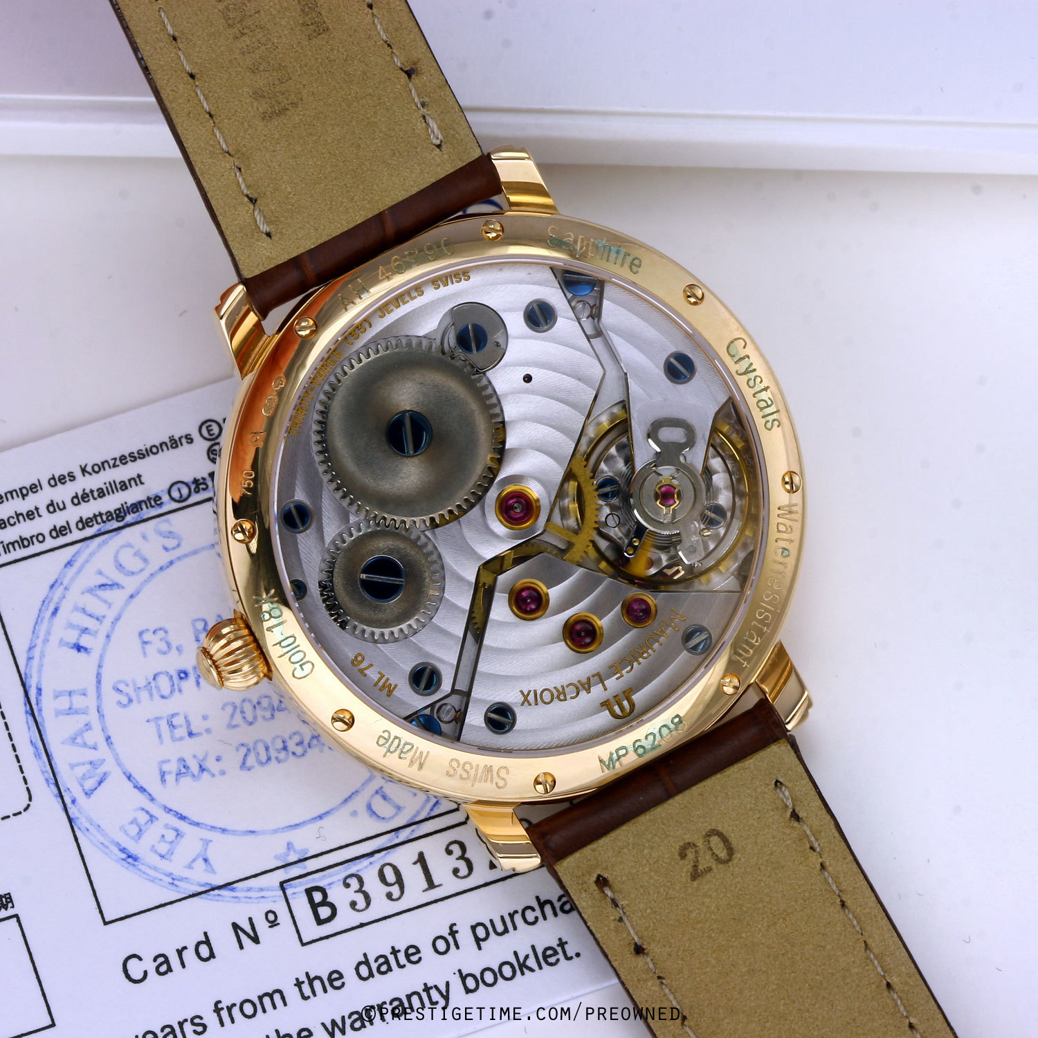 Powered by a Maurice Lacroix calibre ML76 (base Unitas 6498-1) beats at 18'000 vph, with 33 jewels & a power reserve of +/- 42 hours.