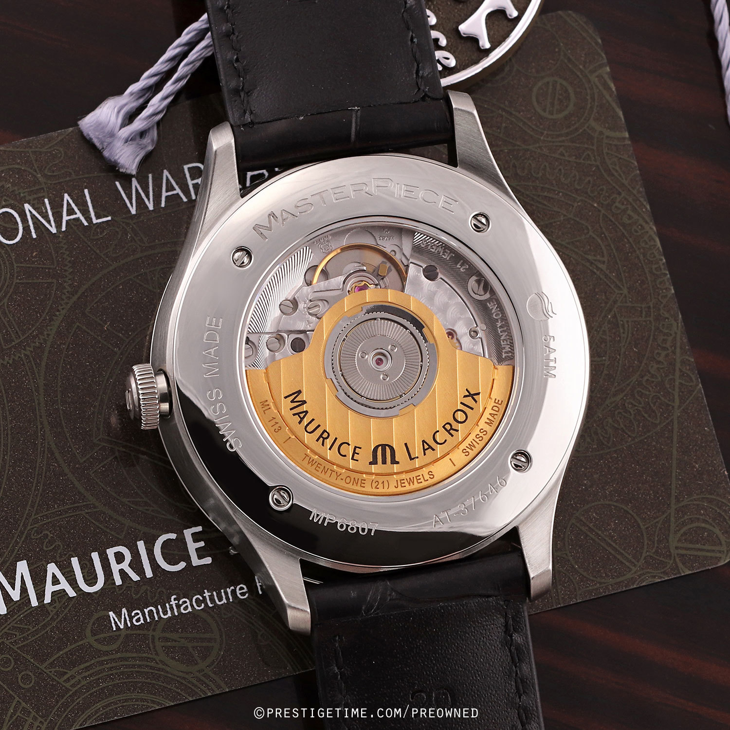Movement: Powered by a Maurice Lacroix caliber ML113 (base ETA 2897), beats at 28,800 vph, contains 21 jewels & has a power reserve of +/- 50 hours