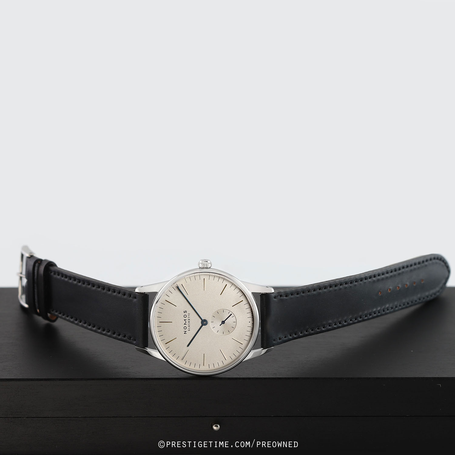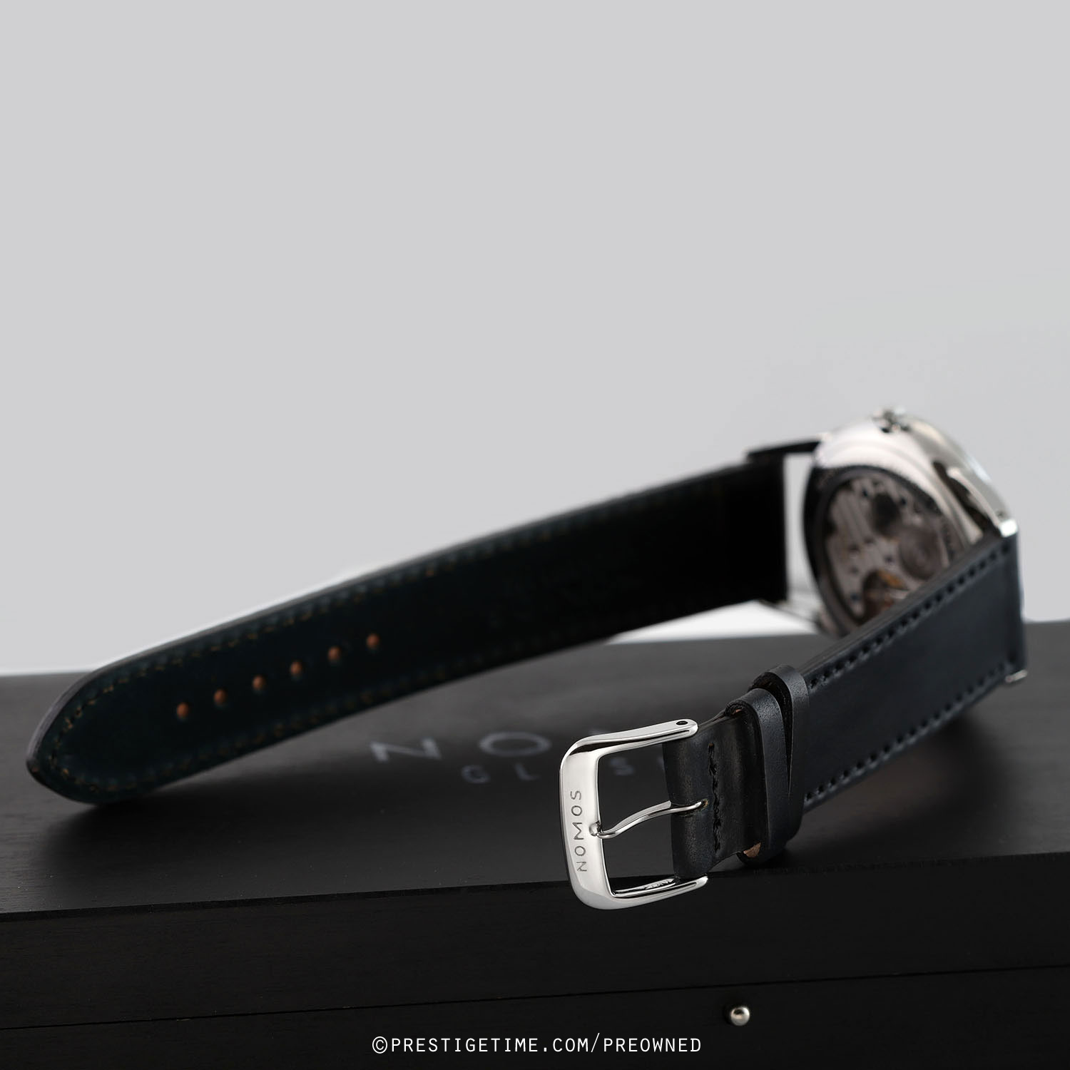 - Fitted on a new NOMOS black horween genuine shell cordovan strap with a steel tang buckle. The strap is brand new, in crisp & unworn condition with its full wear lifespan remaining.