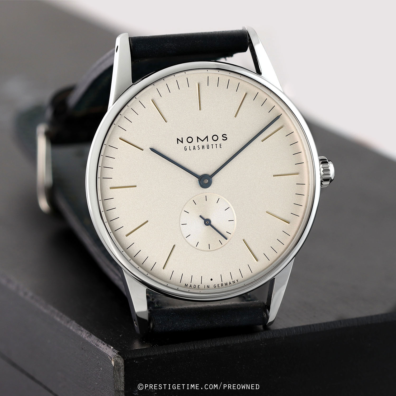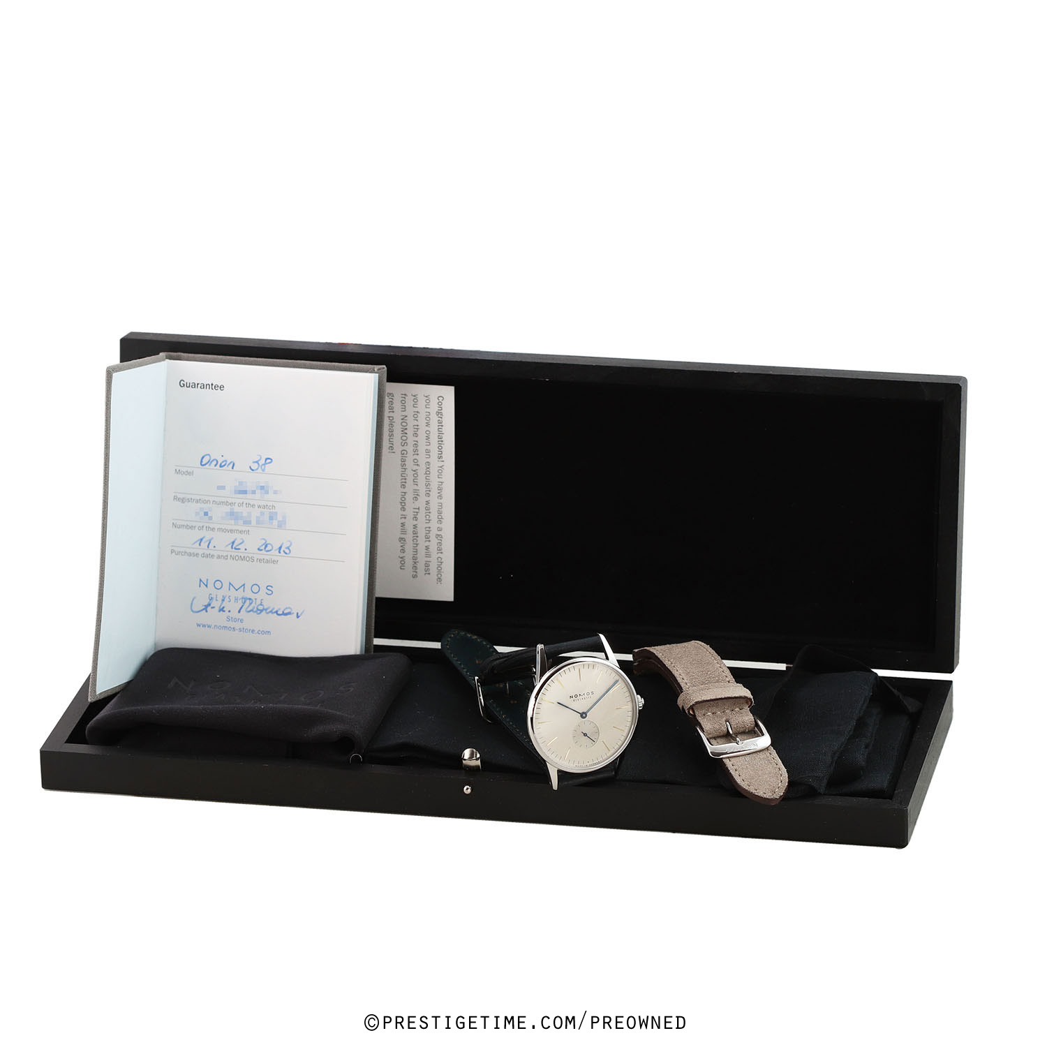 - Delivered with an additional NOMOS Glashutte original beige velour leather (raw hide) strap with a steel tang buckle. The strap is in excellent, near new condition with the majority of its wear lifespan remaining. We would be comfortable rating the strap as in 95% condition.