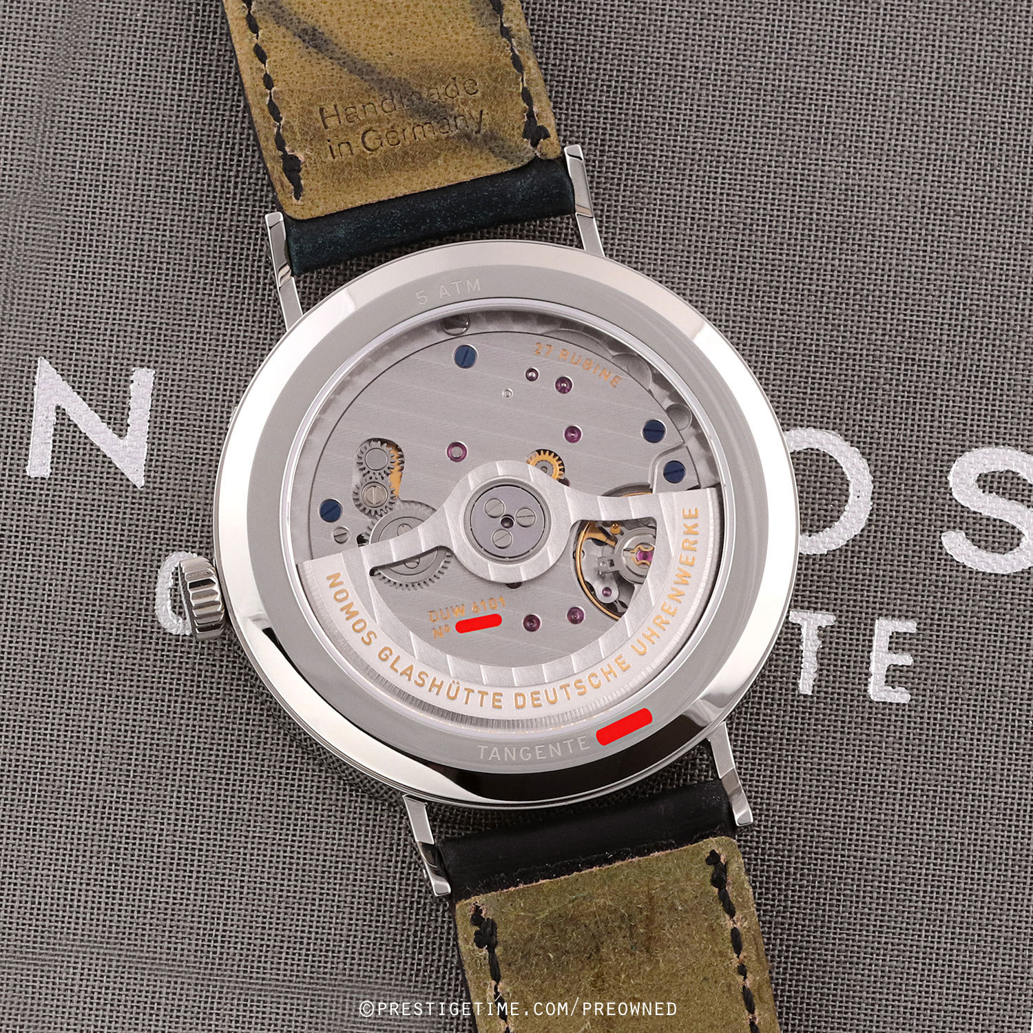 Movement: Powered by a Nomos in-house caliber DUW 6101, beats at 21,600 vph (3Hz), contains 27 jewels & has a power reserve of +/- 42 hours. The movement measures only 3.6mm thick. Equipped with the NOMOS swing system & a tempered blue balance spring. Features a bi-directional winding rotor, tempered blued steel screws & rhodium plated surfaces with Glashütte ribbing and NOMOS perlage decoration.