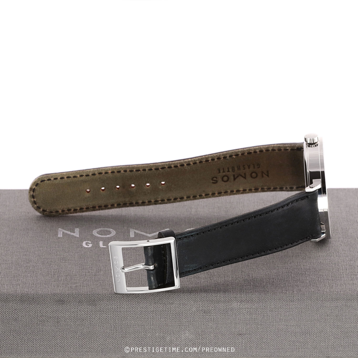 Strap: Fitted on its original NOMOS black horween genuine shell cordovan strap with a stainless steel tang buckle. The strap is in excellent near brand new condition, with its full wear lifespan remaining. We would rate the strap as being in 98%+ condition.