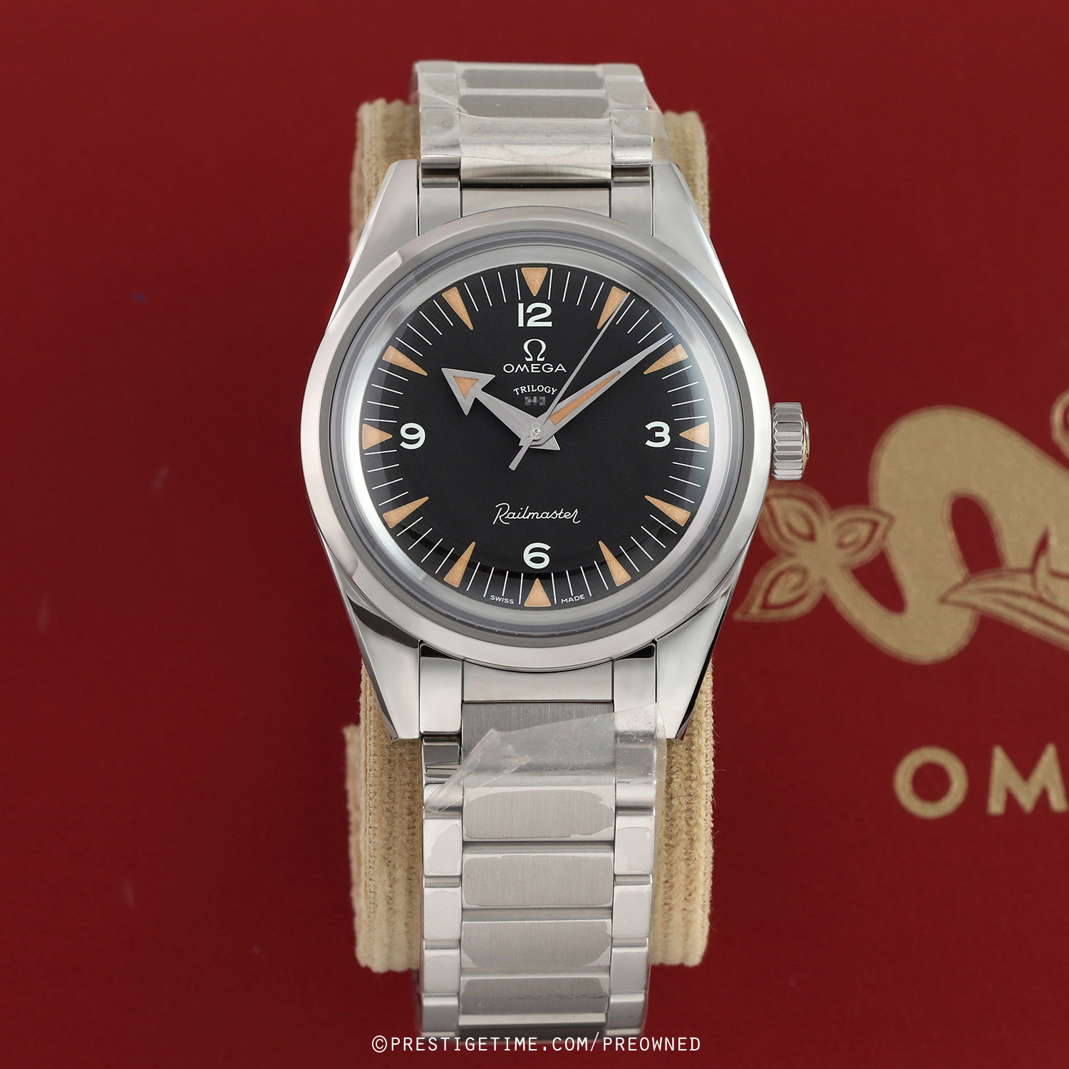 - Special vintage styled red Omega watch box.