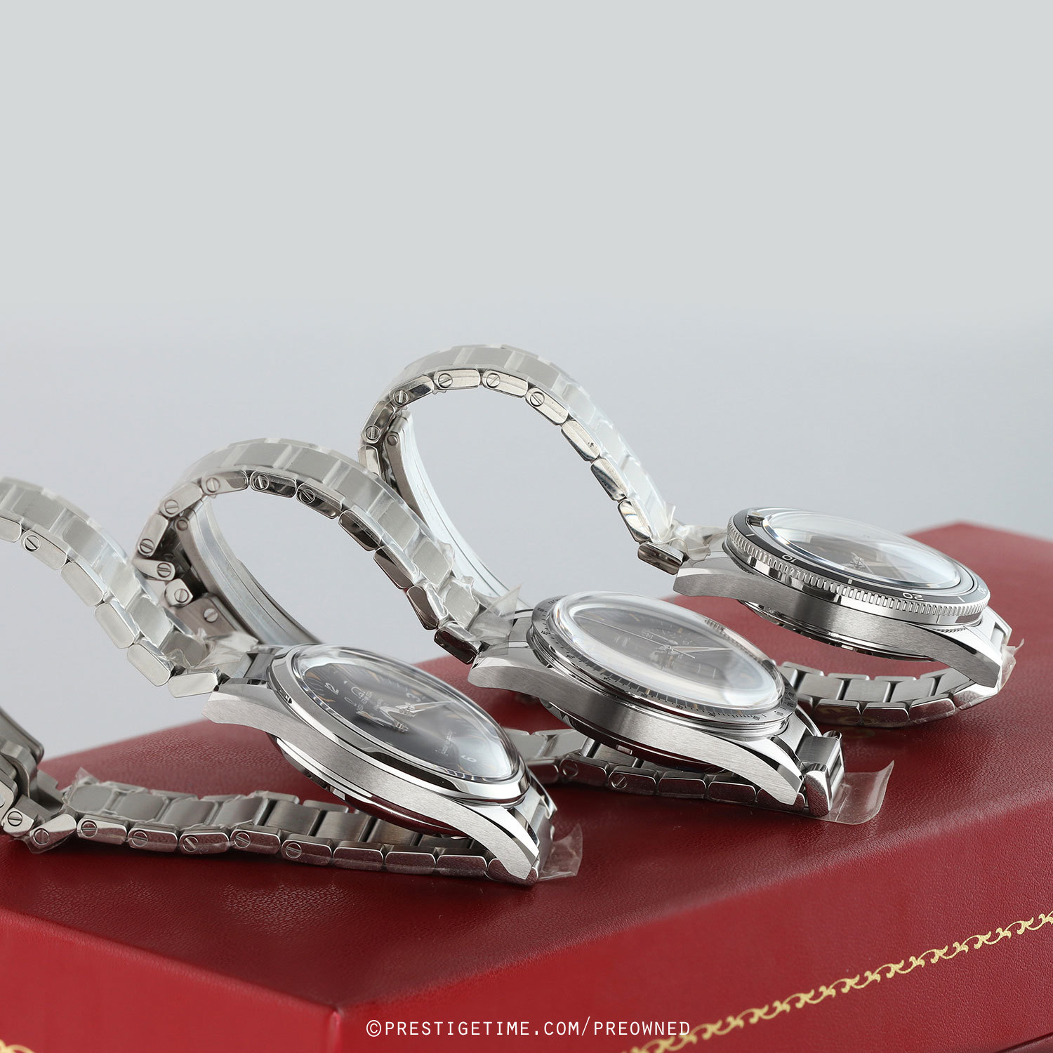 A 60th anniversary tribute to three classic watches released in 1957: Limited & numbered edition 557 sets, with each watch in a set featuring a matching limited edition number printed on the dial: