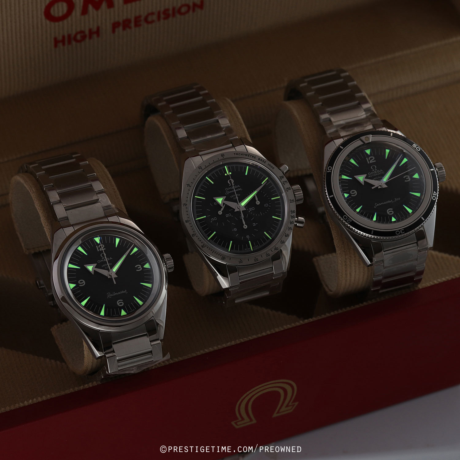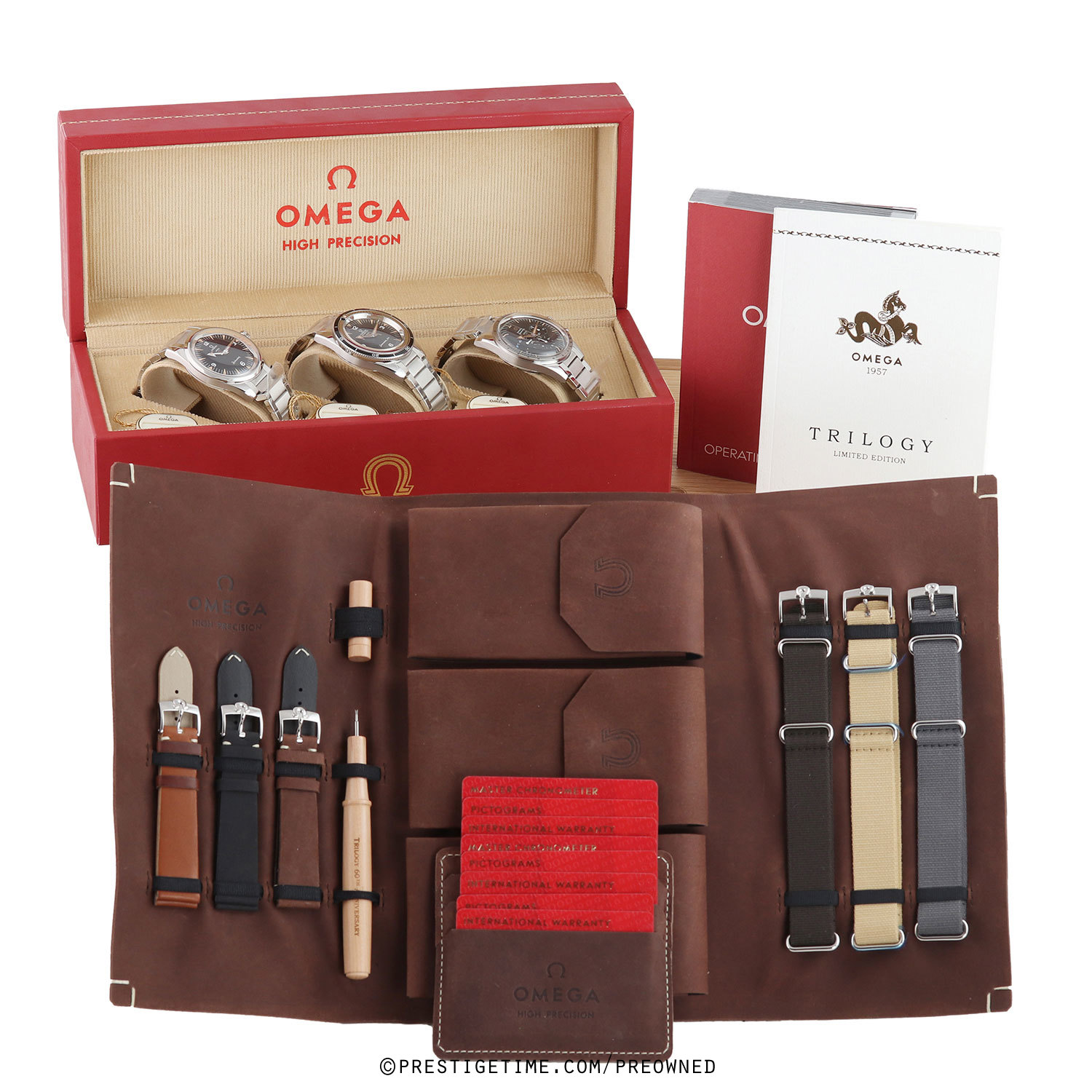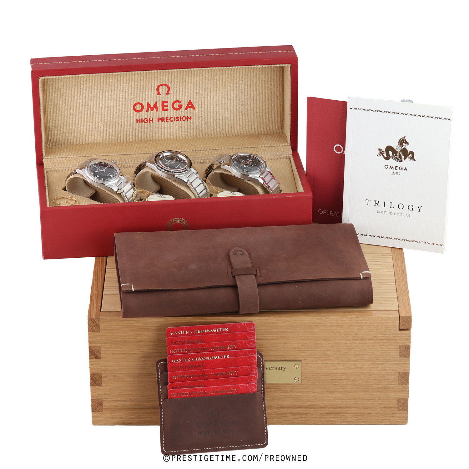 Condition: This set of watches are unworn, in new condition. The watches have many or their original factory protective stickers intact on the bracelets & case backs. Delivered in its original limited edition wood box, with all papers, serialized hang tags & with a limited edition certificate booklet. The Omega warranty cards are dated 04/2022, valid until 04/2027.