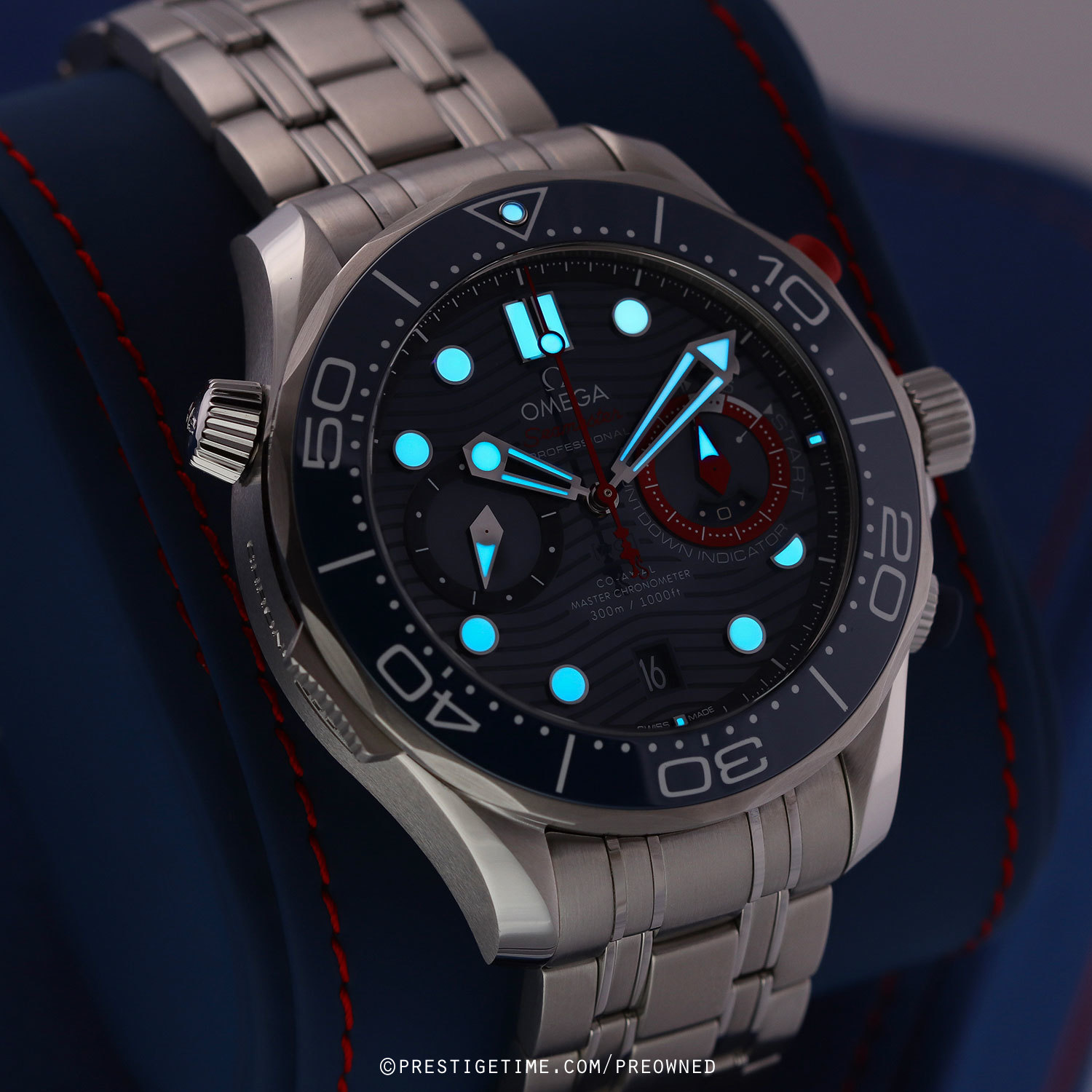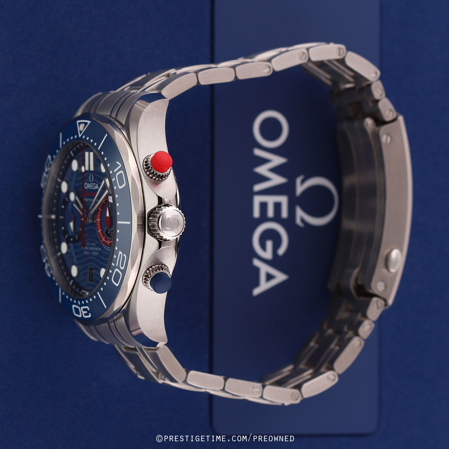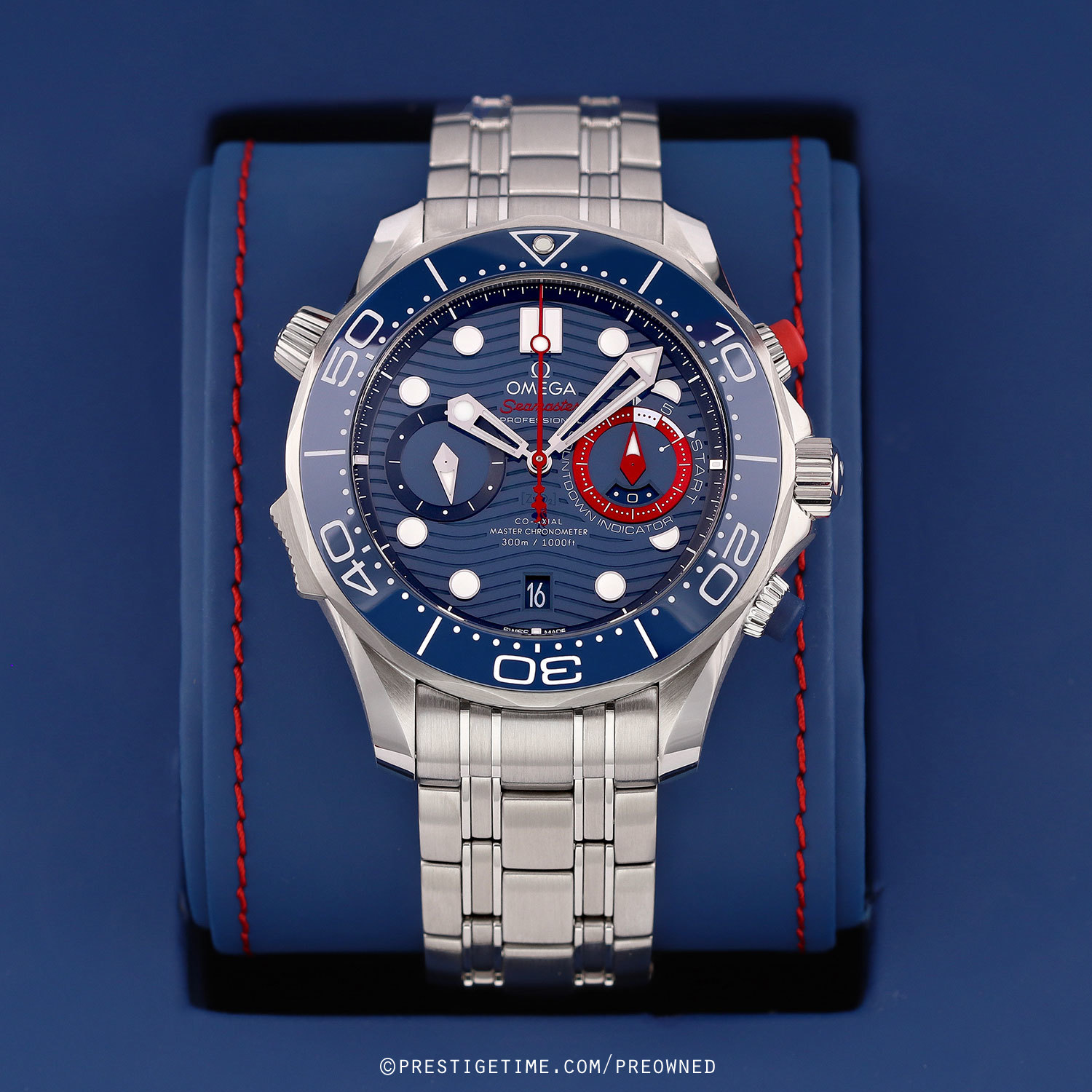 - Delivered with an additional OEM Omega blue rubber strap with a tang buckle. The strap is in unworn condition with its full wear lifespan remaining.