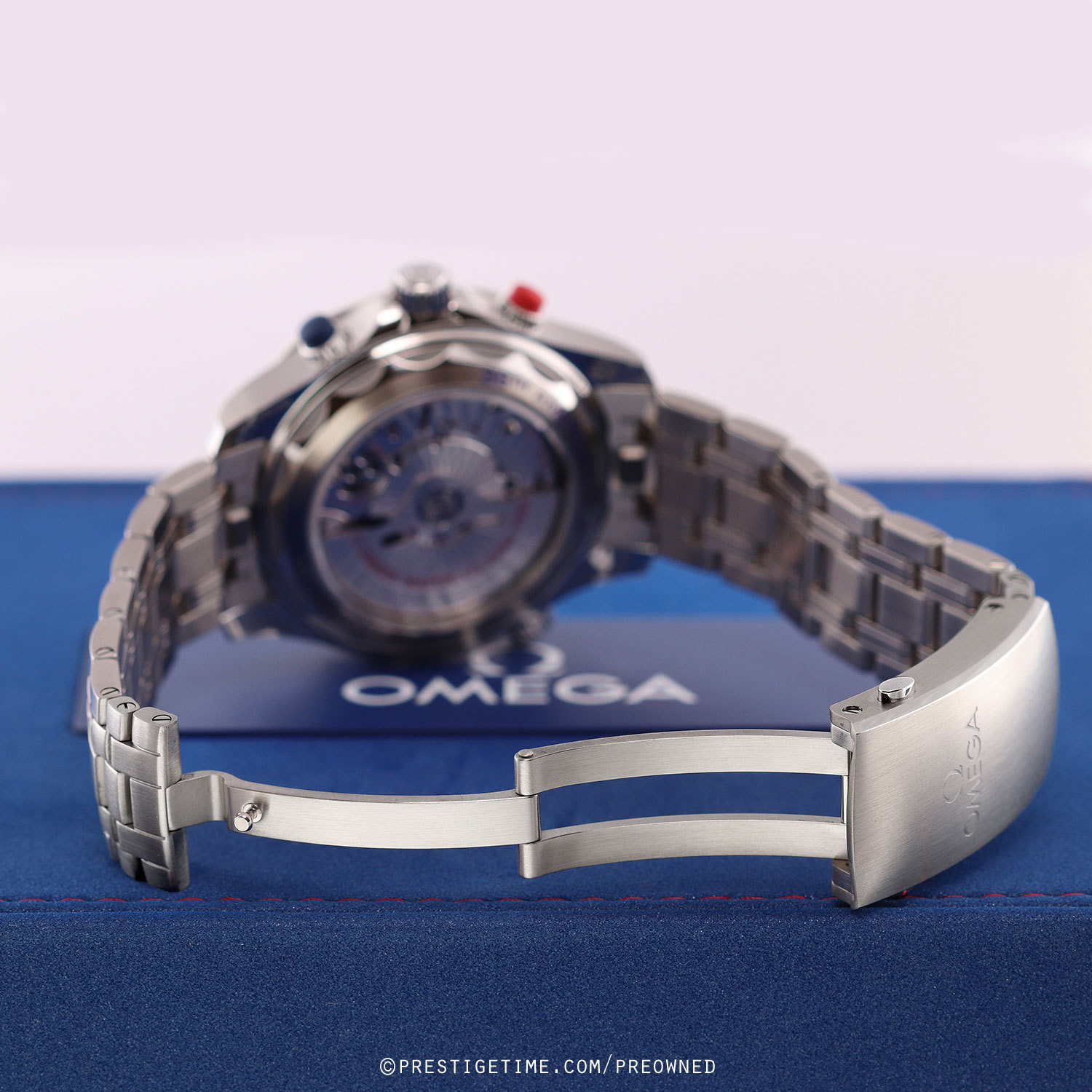 Bracelet & Strap: Delivered on a steel bracelet with an addition blue rubber strap. Both the bracelet & the strap feature Omega's patented Quick-Change system via an integrated quick-release button.