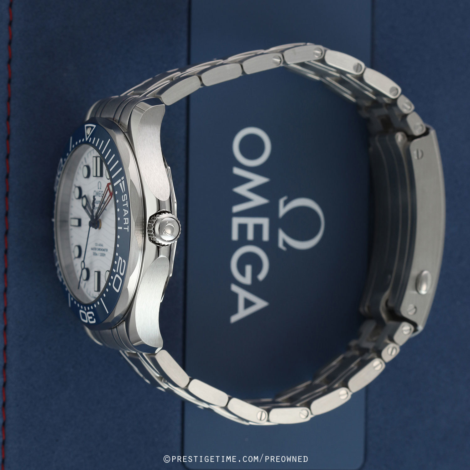 Bracelet: Fitted on its original brushed & polished stainless steel bracelet with a push button folding clasp featuring a push-button micro adjusting link. The bracelet is fully linked & will fit up to a 8-1/8" wrist (20.5 cm). The bracelet features Omega's patented Quick-Change system via an integrated quick-release button.