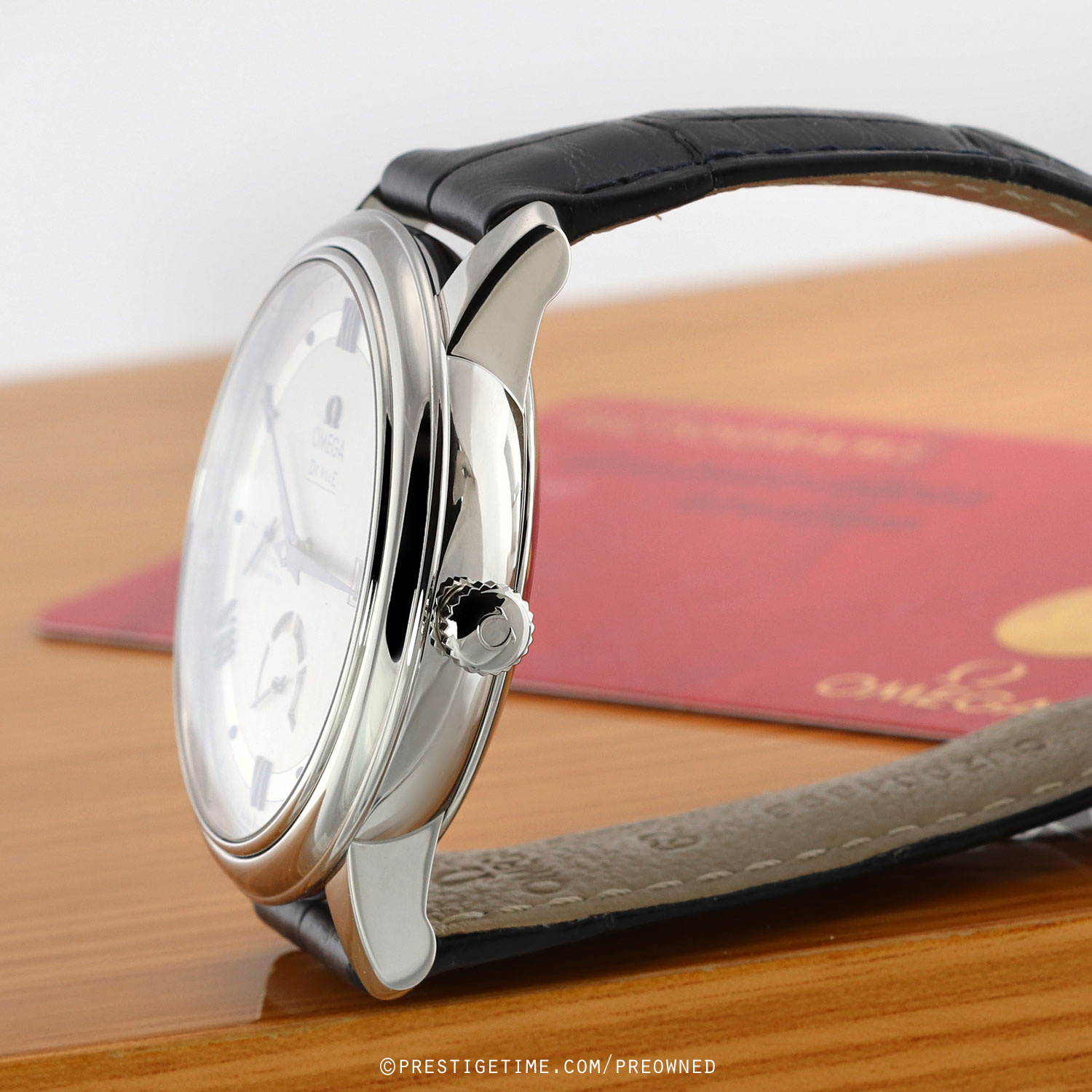 Strap: Fitted on its original Omega blue alligator leather strap with a polished stainless steel tang buckle. The strap is in excellent near new condition with the majority of its wear lifespan remaining. We would grade this strap in 95%+ overall condition.