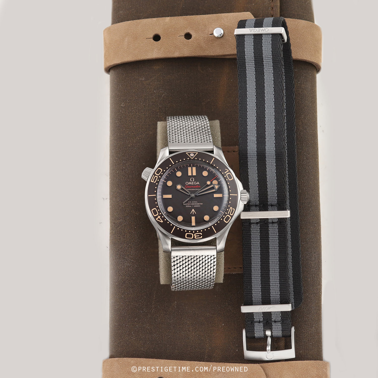 - Delivered with an additional OEM Omega grey & black fabric NATO strap with 007 engraved on the strap keep. The strap is excellent near-new condition with only very light signs of wear & with its full wear lifespan remaining. We would be comfortable rating this strap as in 98% condition.