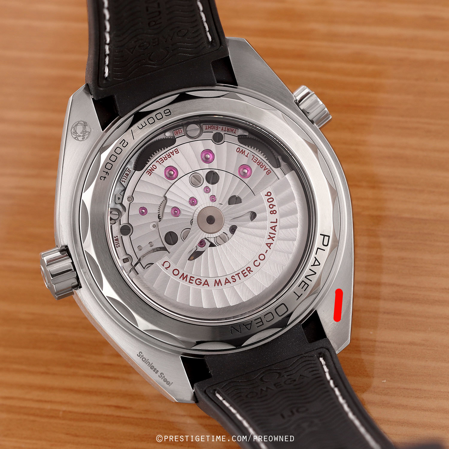 Movement: Powered by a self-winding METAS certified Omega Master Co-Axial caliber 8906 with 38 jewels & power reserve of +/- 60 hours. The movement is a Swiss Federal Institute of Metrology (METAS) certified Master-Chronometer. The METAS certification tests water resistance, precision and magnetic resistance up to 15,000 gauss. The movement also features Omega's Si14 silicon balance spring and Omegas Co-Axial escapement. The rotor & visible bridges are decorated with Geneva waves in arabesque.