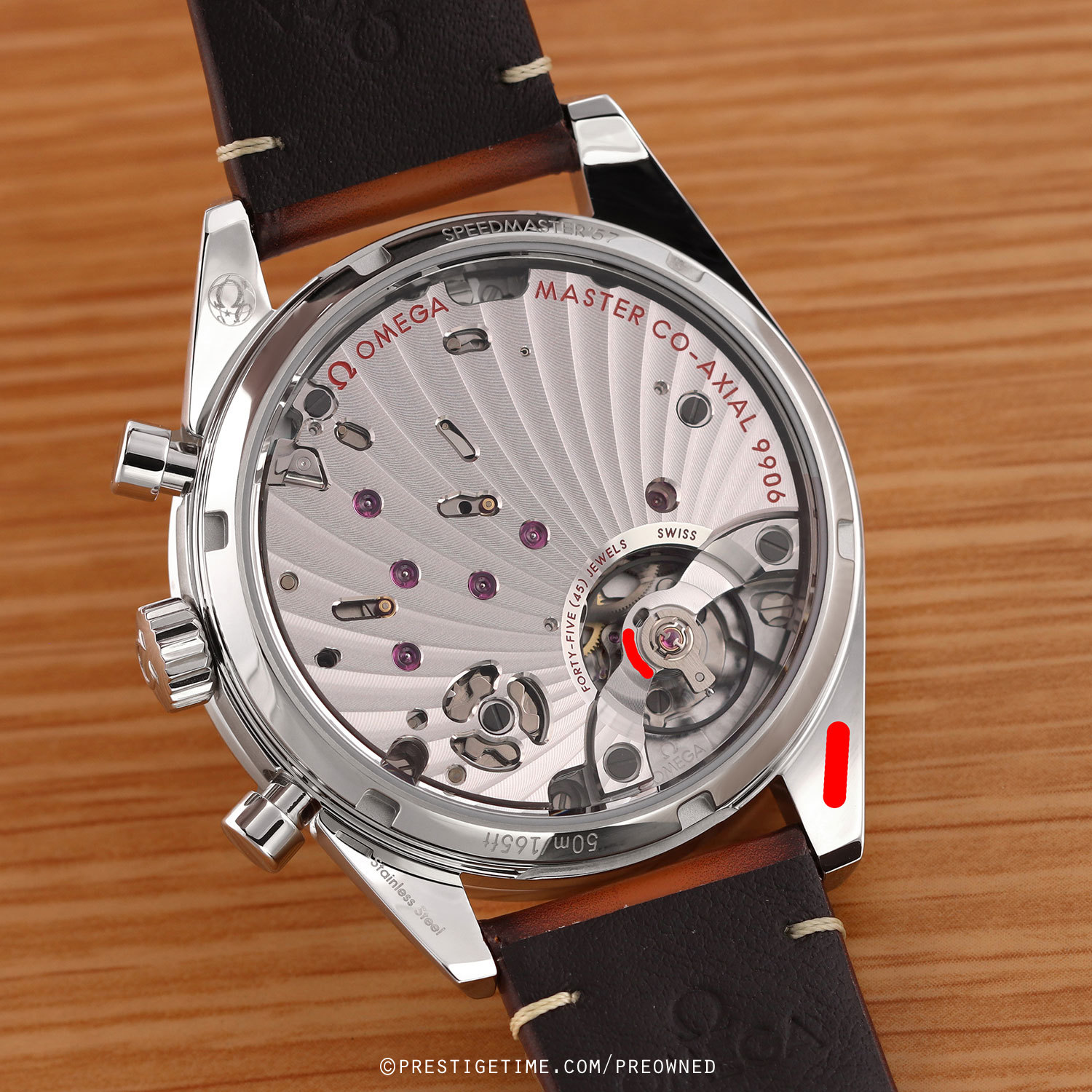 Movement: Powered by an Omega manual winding calibre Master Co-Axial 9906, beats at 28,800 vph (4Hz), contains 45 jewels & power reserve of +/- 60 hours. The movement is a Swiss Federal Institute of Metrology (METAS) certified Master-Chronometer. The METAS certification tests water resistance, precision and magnetic resistance to 15,000 gauss. Features Omega's Si14 silicon balance spring & Omega's Co-Axial Escapement. The back-plate is rhodium plated & decorated with Geneva waves in arabesque design.