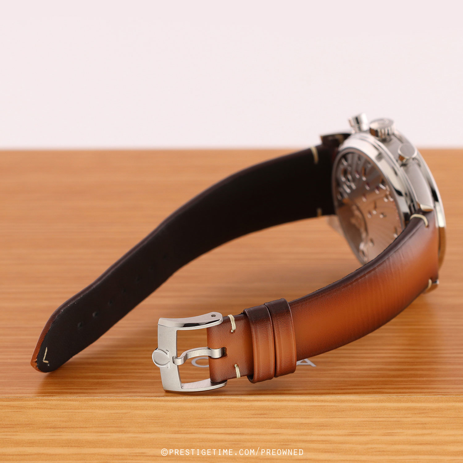 Strap: Fitted on its original Omega brown gradient non‑grained calf leather strap with a stainless steel tang buckle. The strap is in excellent near-new condition with its full wear lifespan remaining. We would rate the strap in 98%+ condition.
