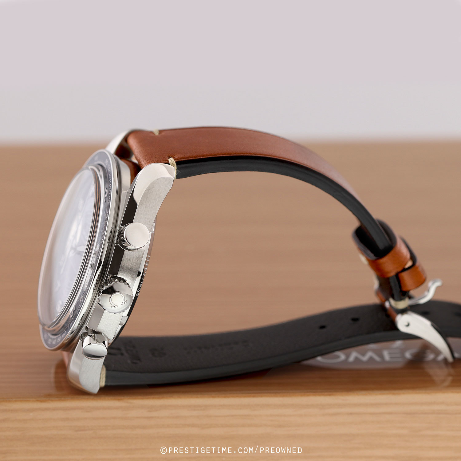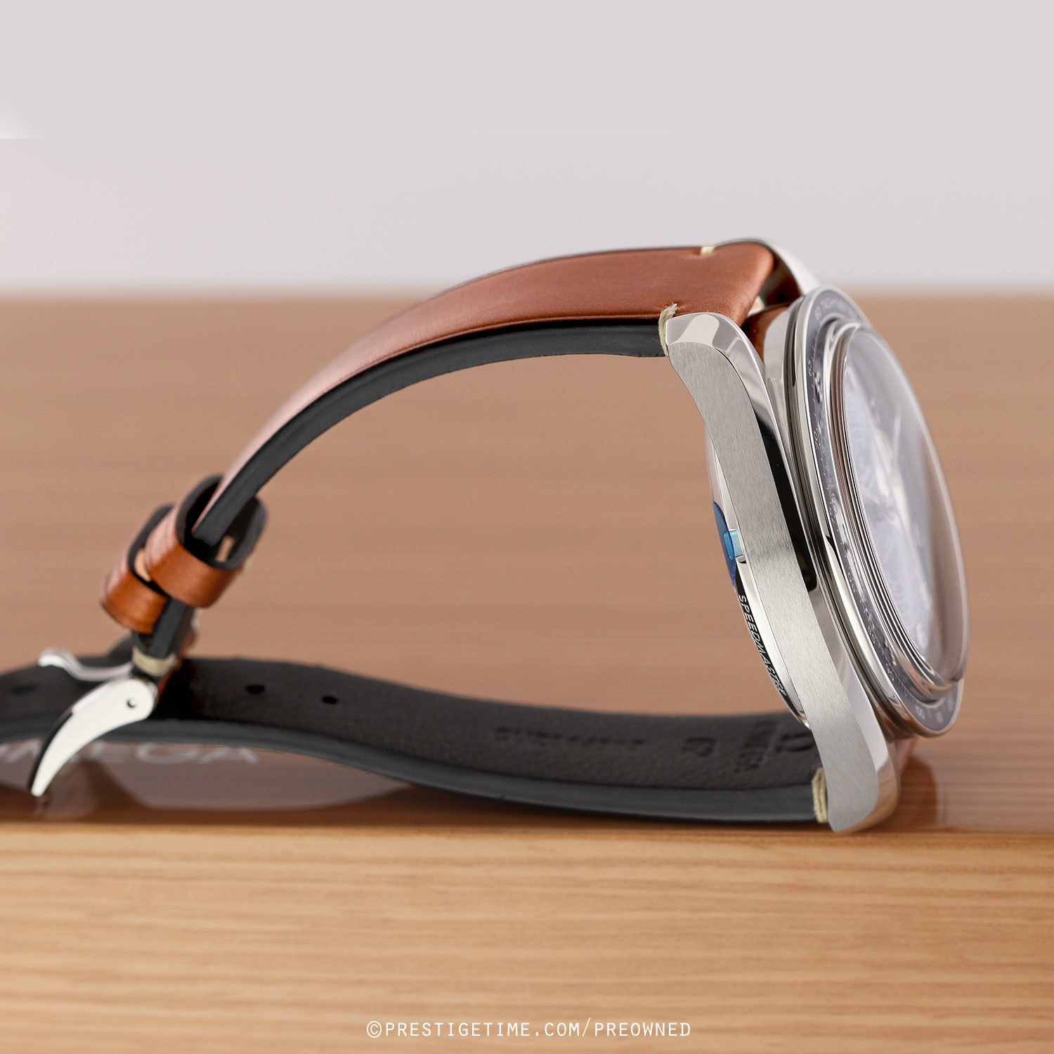 Strap: Fitted on its Omega original light brown calfskin strap with a stainless steel tang buckle. The strap is in unworn condition with its full wear lifespan remaining.