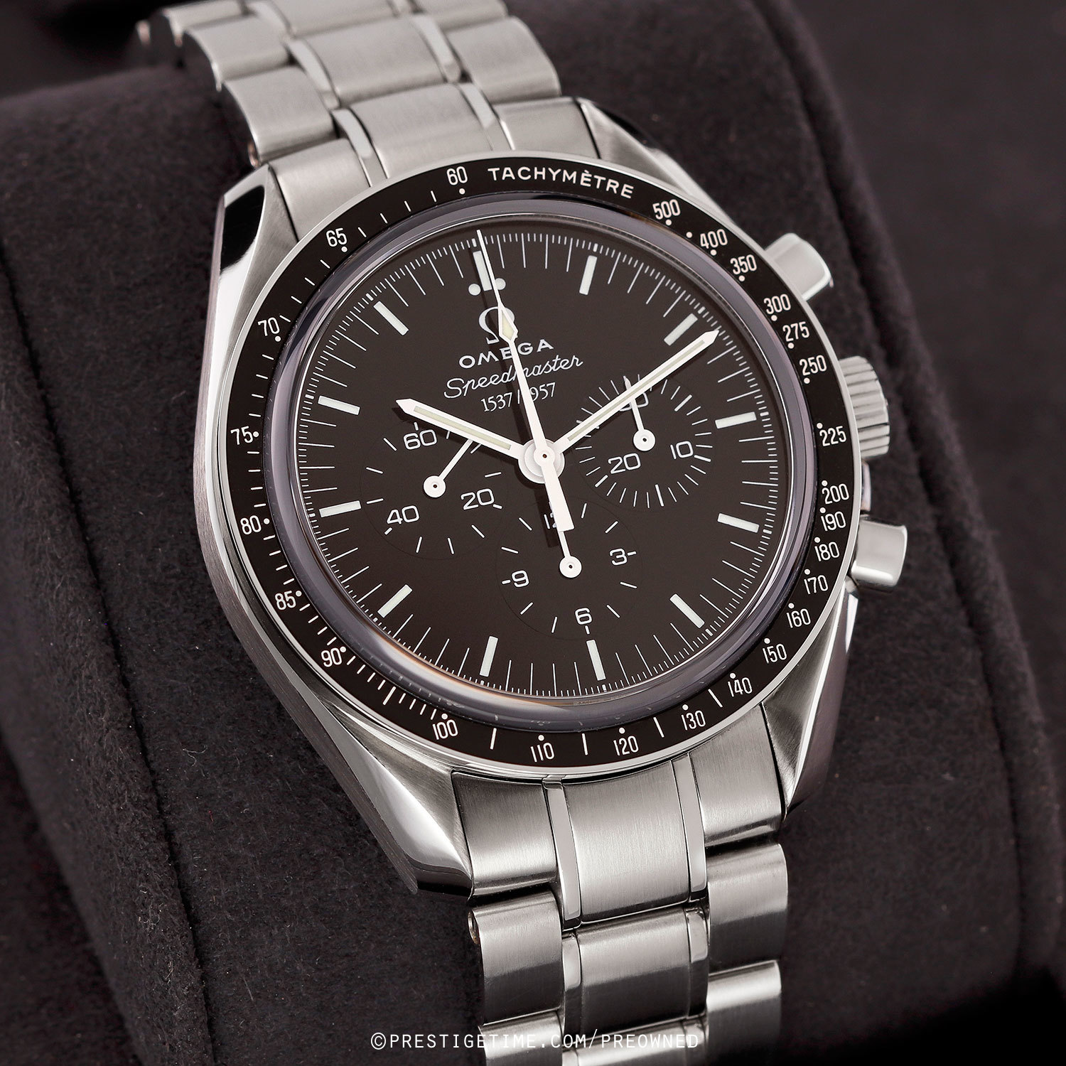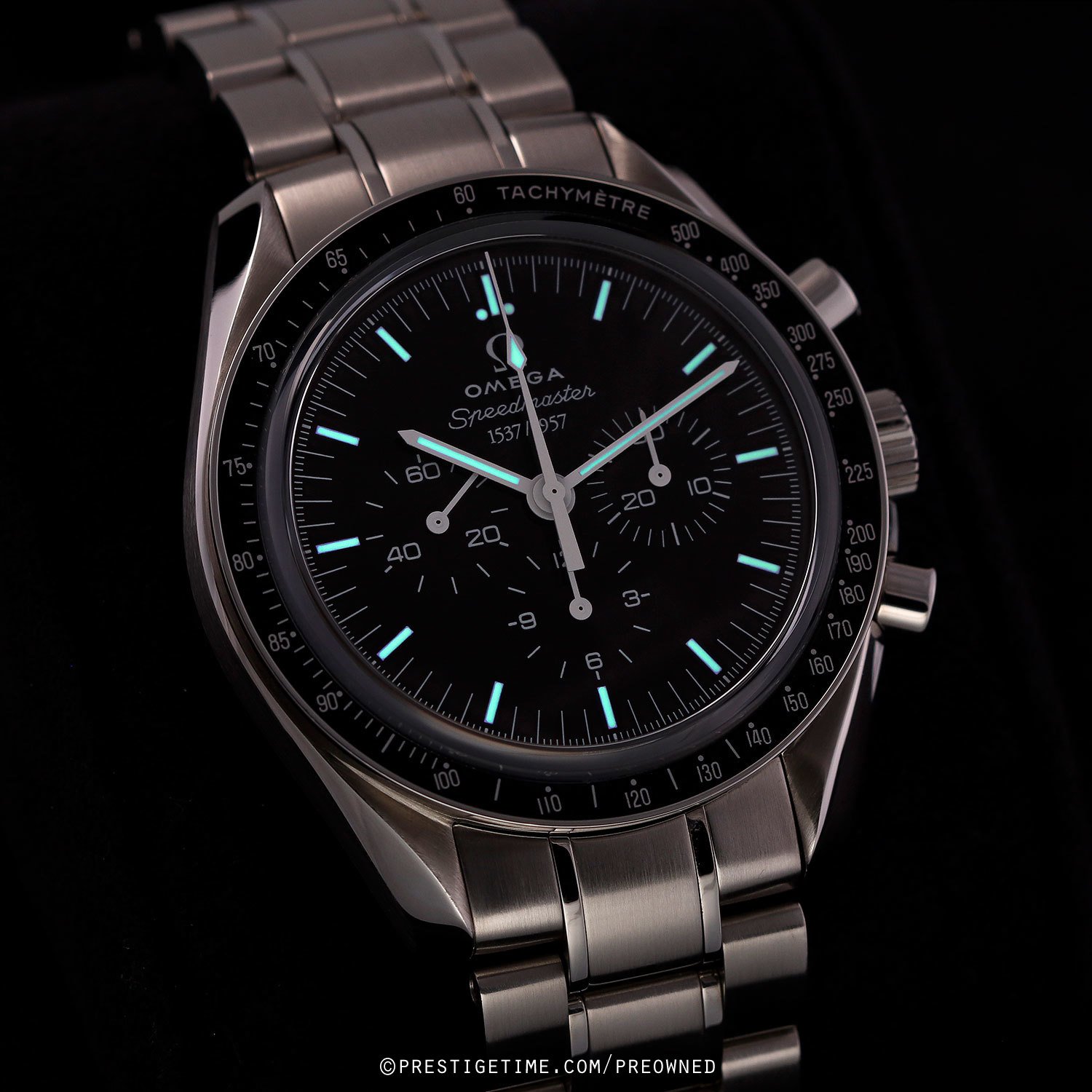 Speedmaster 50th Anniversary limited edition of 1957 pieces, commemorating the birth of the Speedmaster collection.