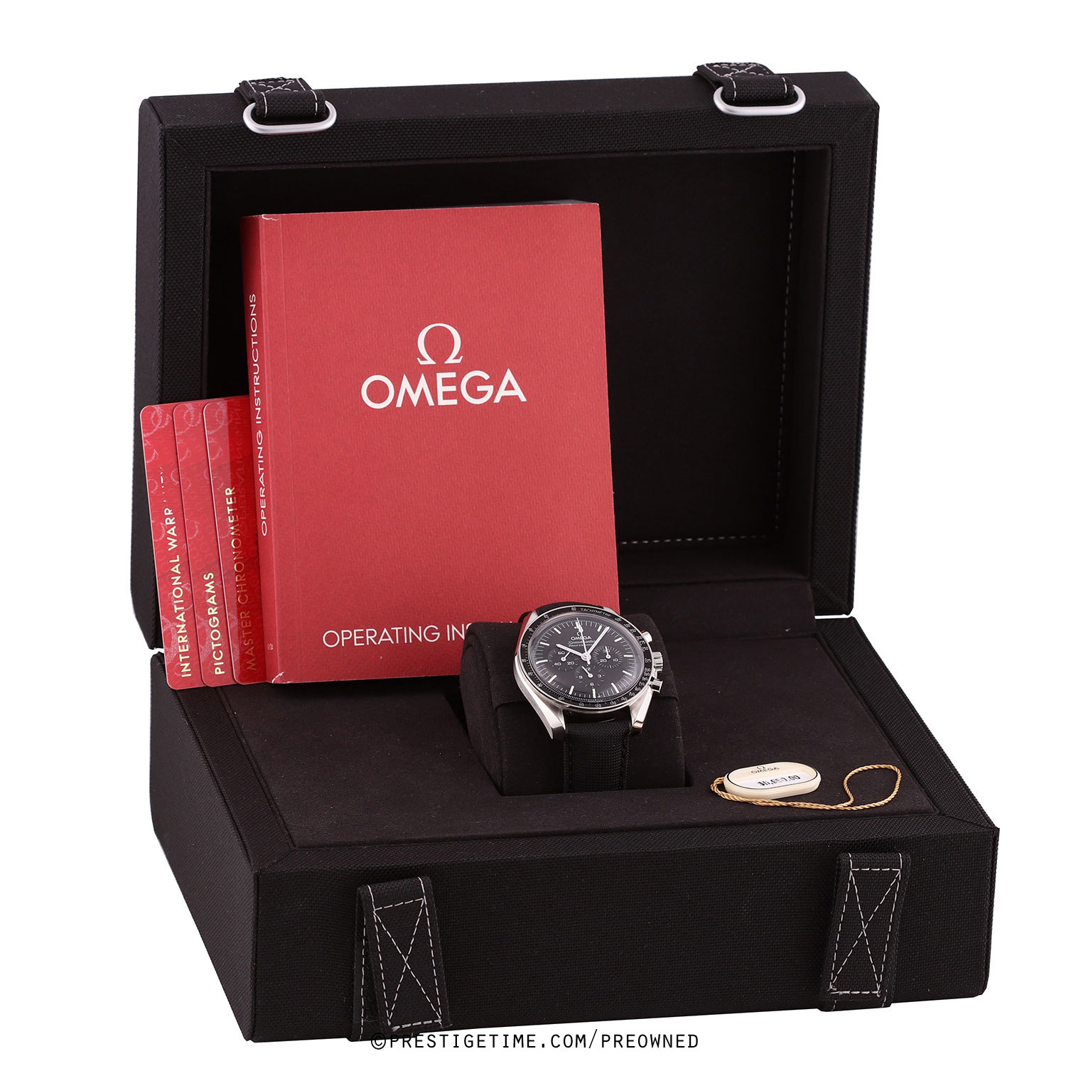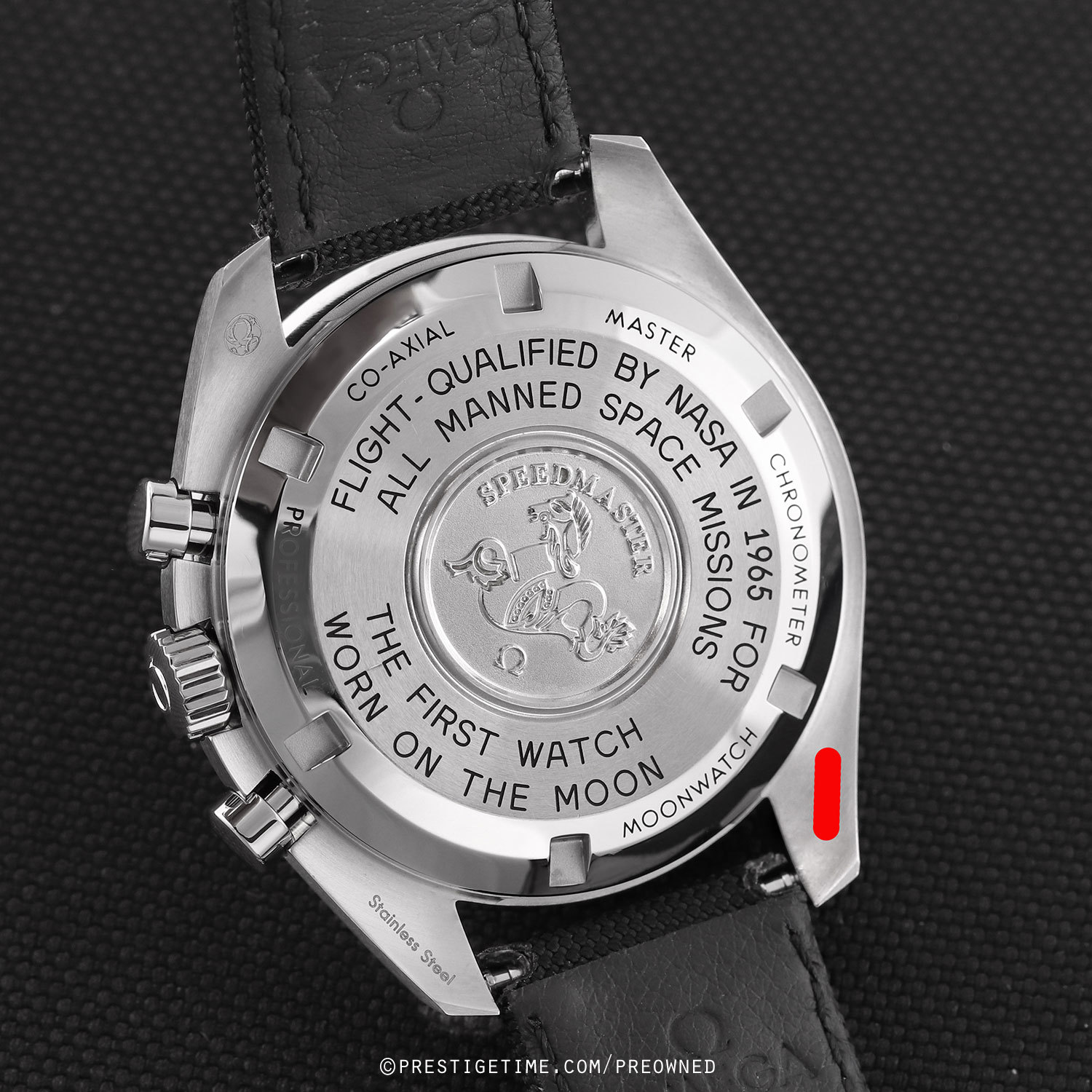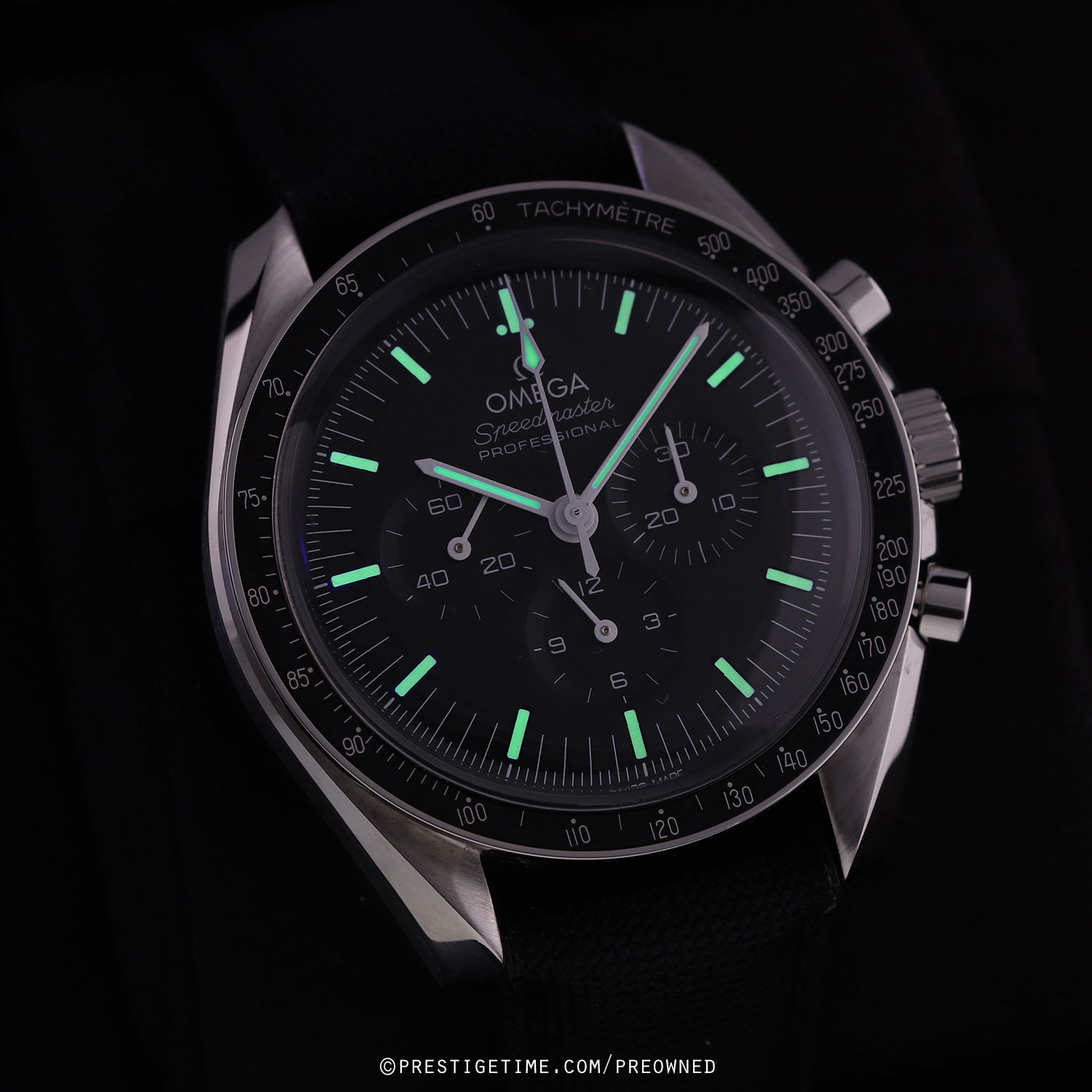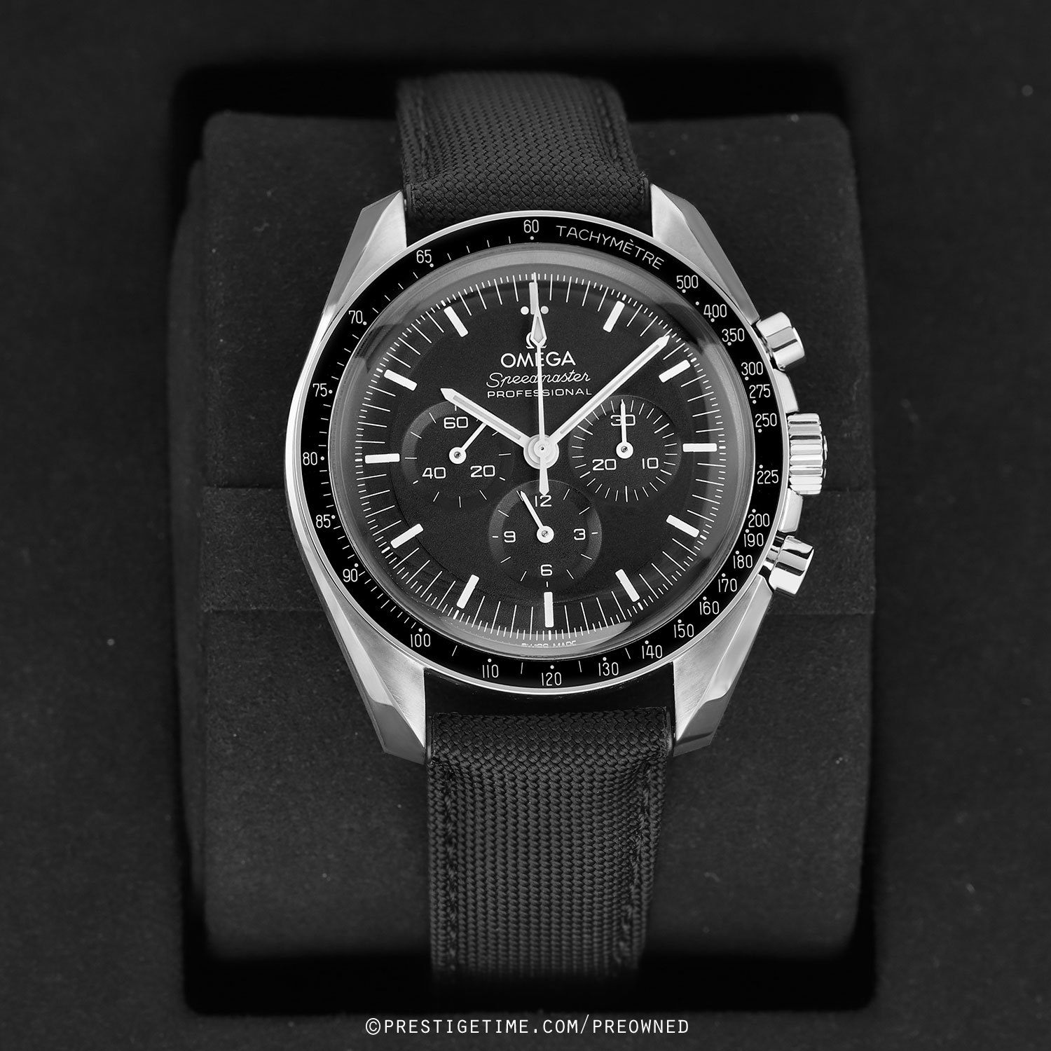 Strap: Fitted on its original Omega black fabric strap with a stainless steel push-button deployant buckle. The strap is in excellent near-new condition with the majority of its wear lifespan remaining. We would be comfortable rating the strap in 97% condition.