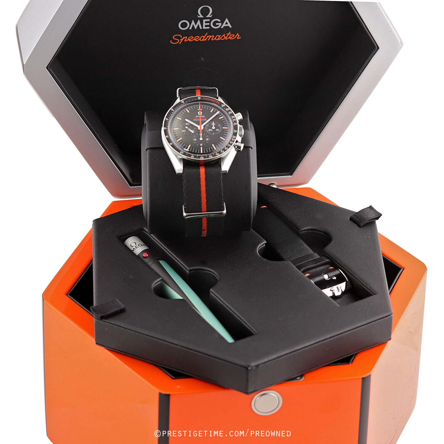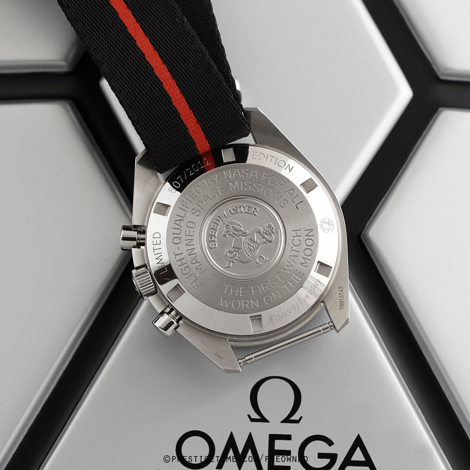 Created in tribute to the original Speedmaster 1968 ULTRAMAN. Limited & numbered edition of 2012 pieces. Featuring a case-back stamped with the OMEGA Seahorse medallion & in addition to the traditional engravings is #SpeedyTuesday. Features: