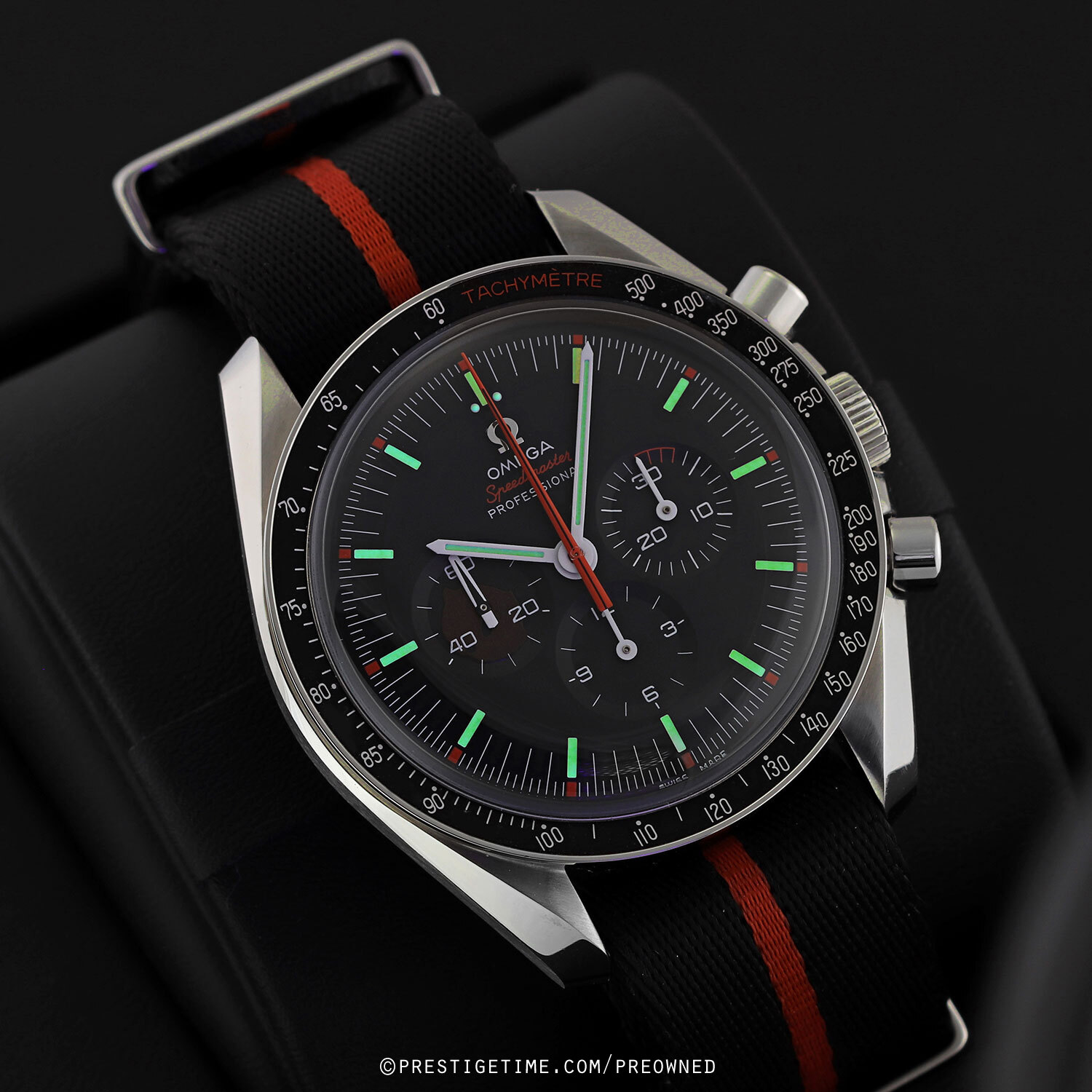 - Fitted on its original black & red NATO strap. #SpeedyTuesday engraved on one of the polished steel strap loops.