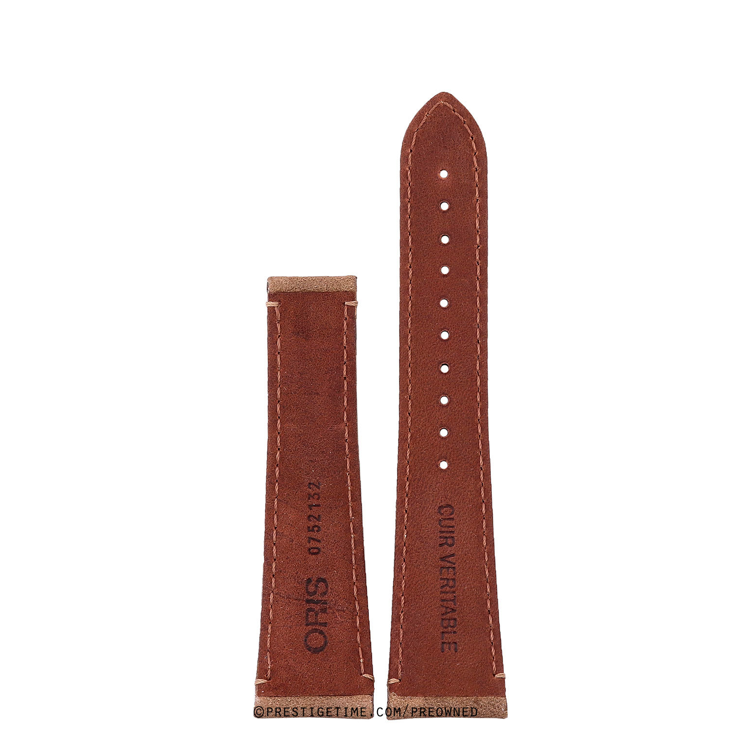 Genuine Oris brown stitched calfskin strap for deployant buckle.
