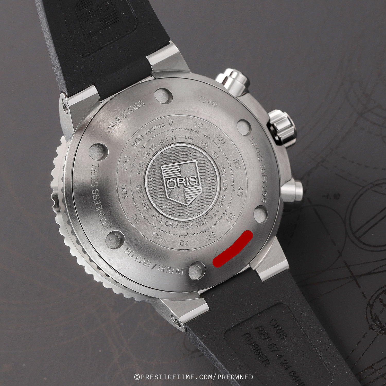 Movement: Powered by an Oris caliber 774 (base Sellita SW 500) with Oris's signature red rotor, beats at 28,800 vph, contains 25 Jewels & has a power reserve of +/- 48 hours.