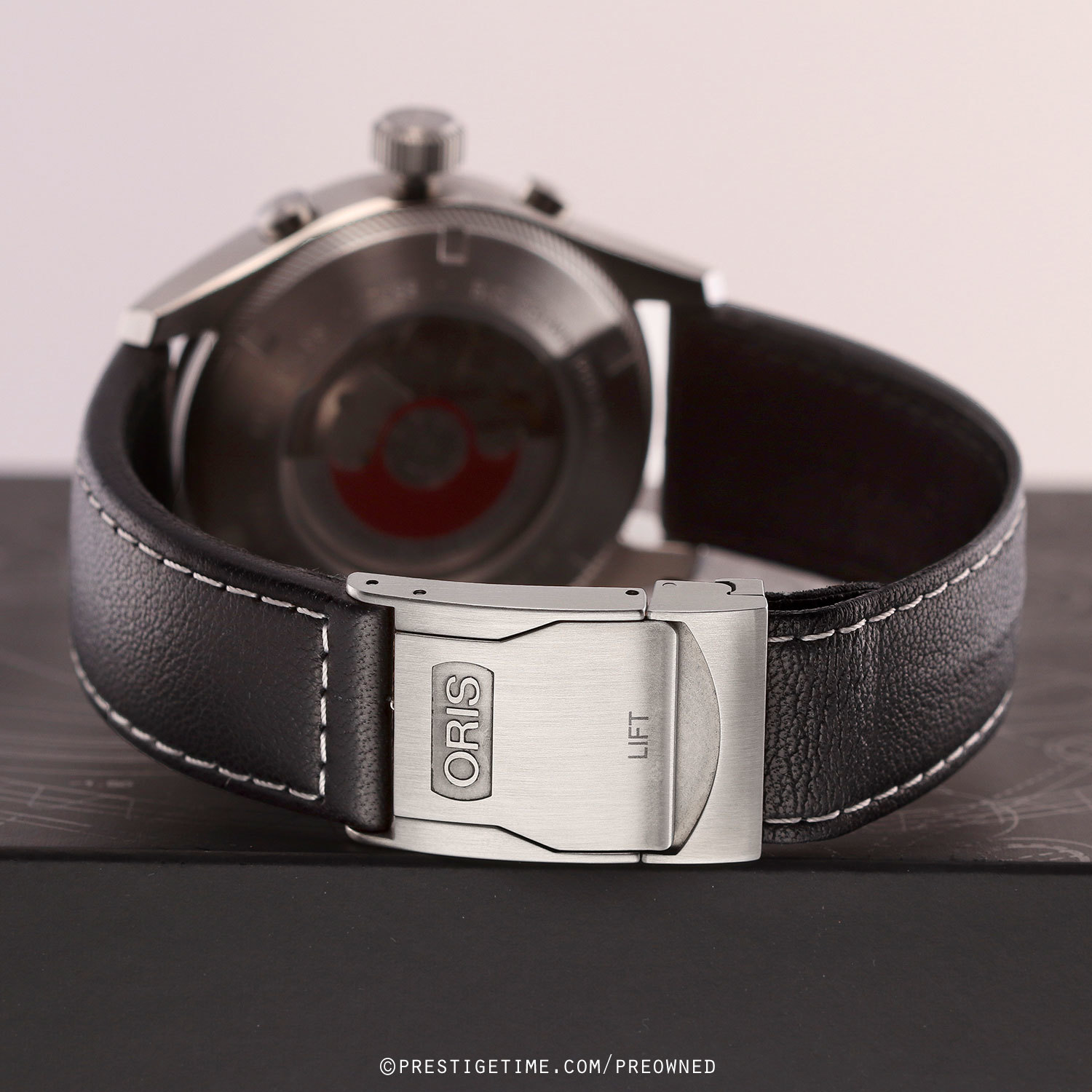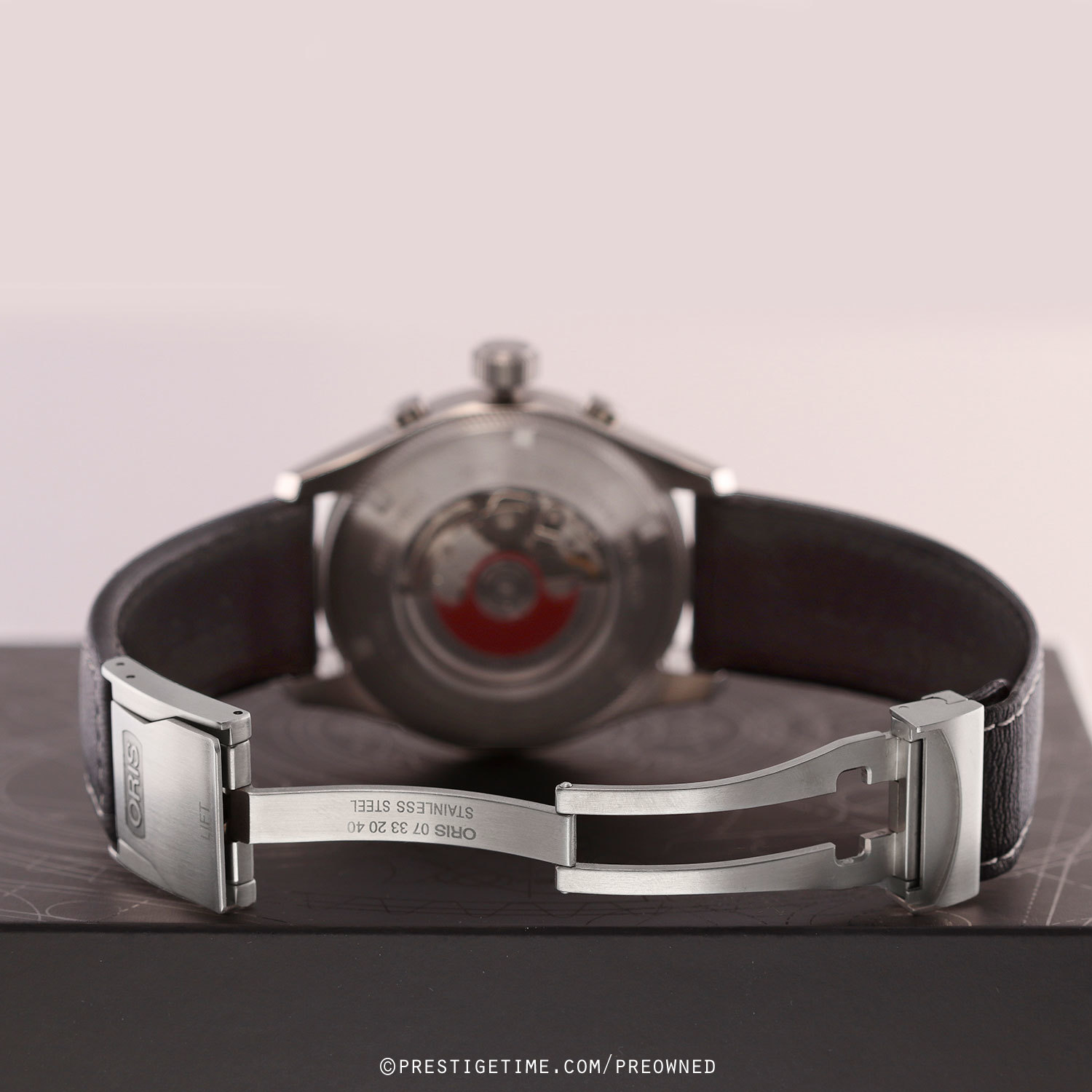 Strap: Fitted on its original Oris black calfskin leather strap with a stainless steel deployant buckle. The strap is excellent near new condition with the majority of its wear lifespan remaining. We would be comfortable grading this watch at 98% condition.