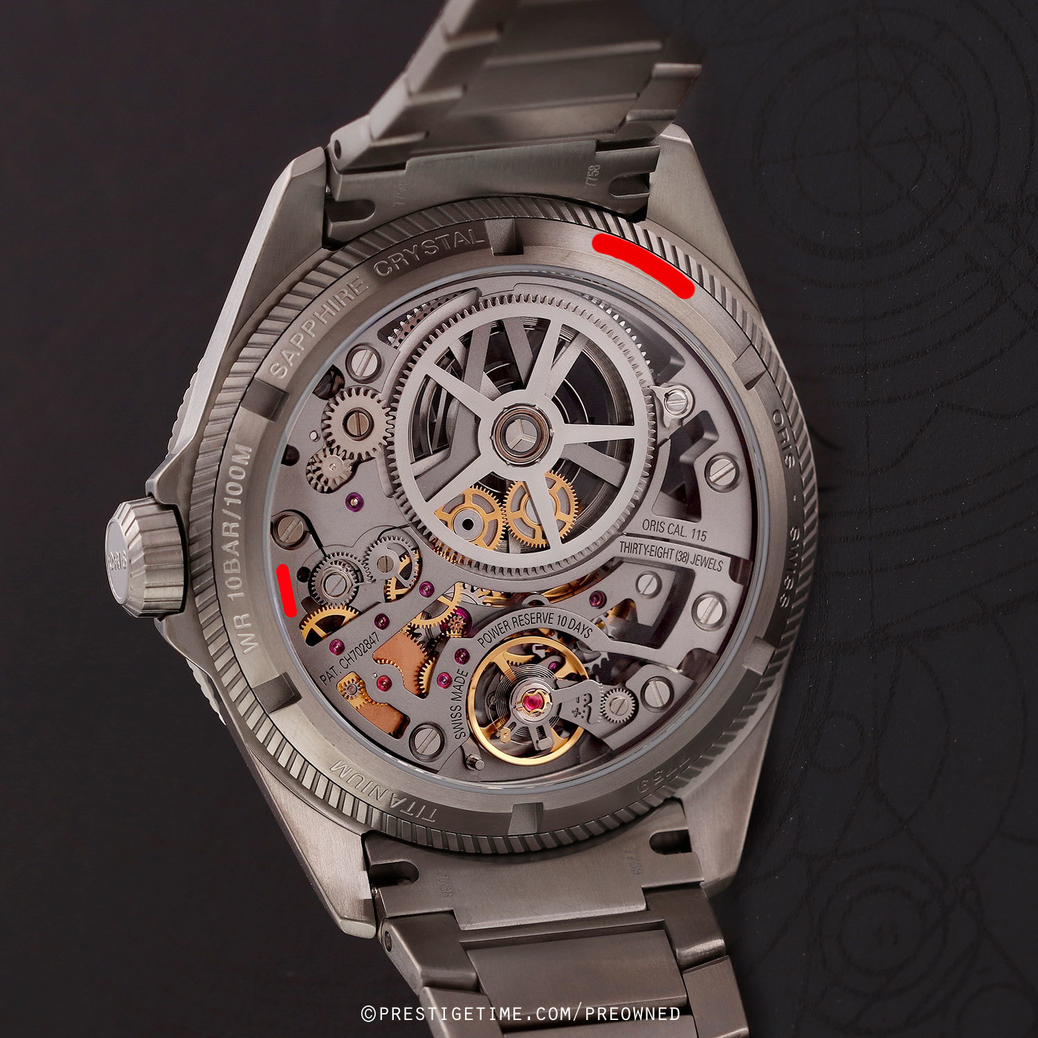 Movement: Powered by an Oris in-house manual wind caliber 115, beats at 21,600 vph (3Hz), contains 38 jewels & has an impressive 10 day (240 hour) power reserve.