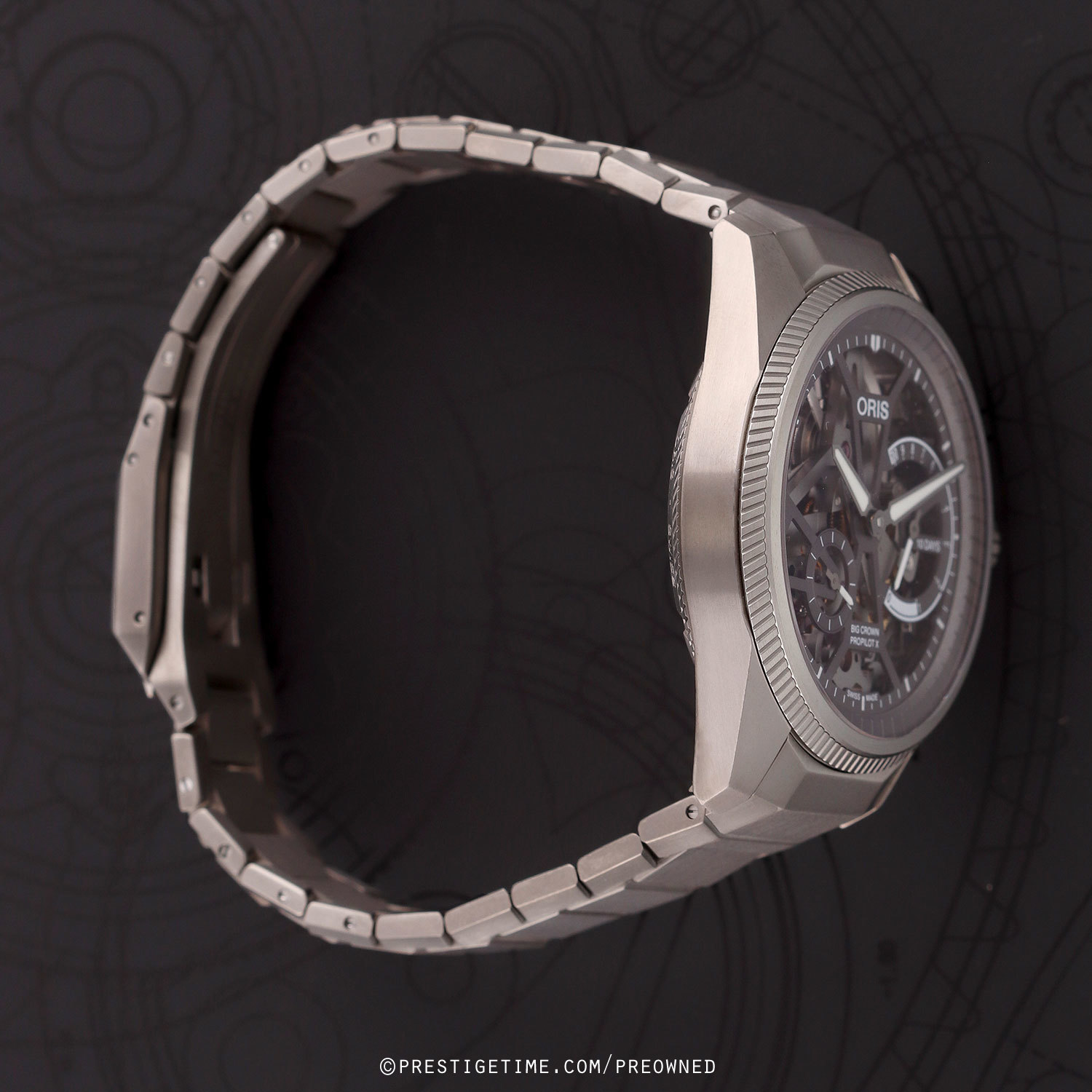 Bracelet: Fitted on its original brushed titanium bracelet with a folding clasp. The bracelet is fully linked will fit up to a 8.25" wrist.
