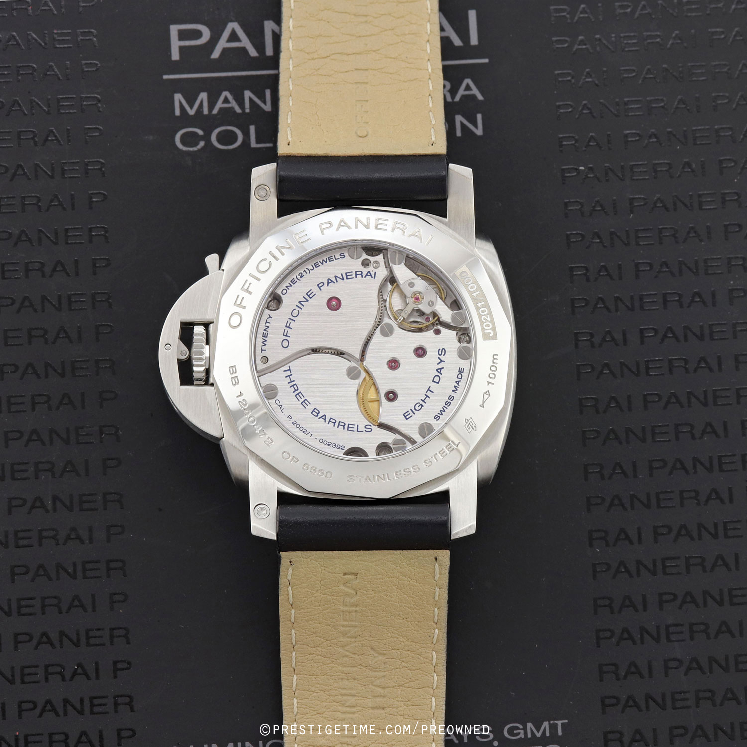 Movement: Powered by an in-house Panerai caliber P.2002/1, which beats at 28,800 vph, contains 21 jewels & has an very impressive power reserve of 8 days (192 hours).