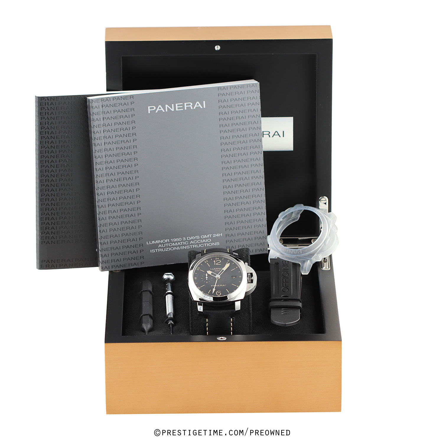 - Delivered with an an additional, unworn, PANERAI branded black rubber strap & tool for strap changing is included.