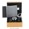 - Second time zone indicated via the central arrowhead hand, which points to a 24 hour scale on the outer edge of the dial. The GMT hand will make a single revolution once every 24 hours.