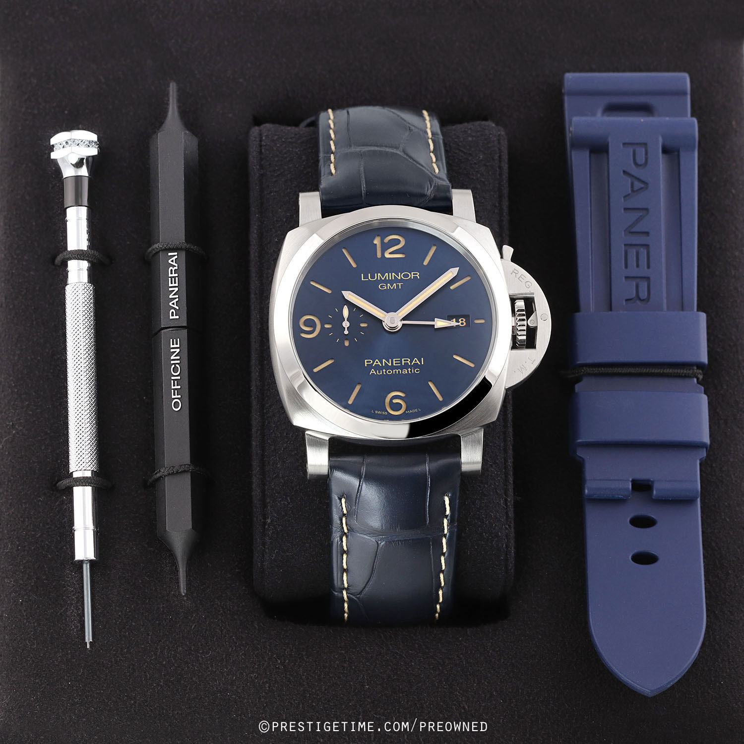 - Delivered with an additional Panerai branded blue rubber strap. This strap is in new & unworn condition with its full wear lifespan remaining.
