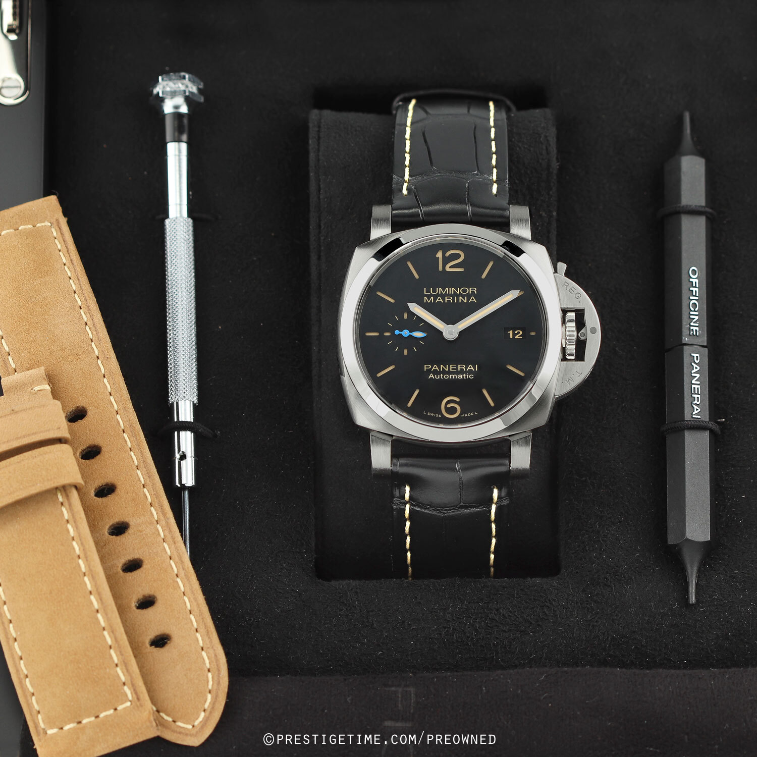 • Supplied with Panerai branded tools to change the strap (no additional straps supplied).