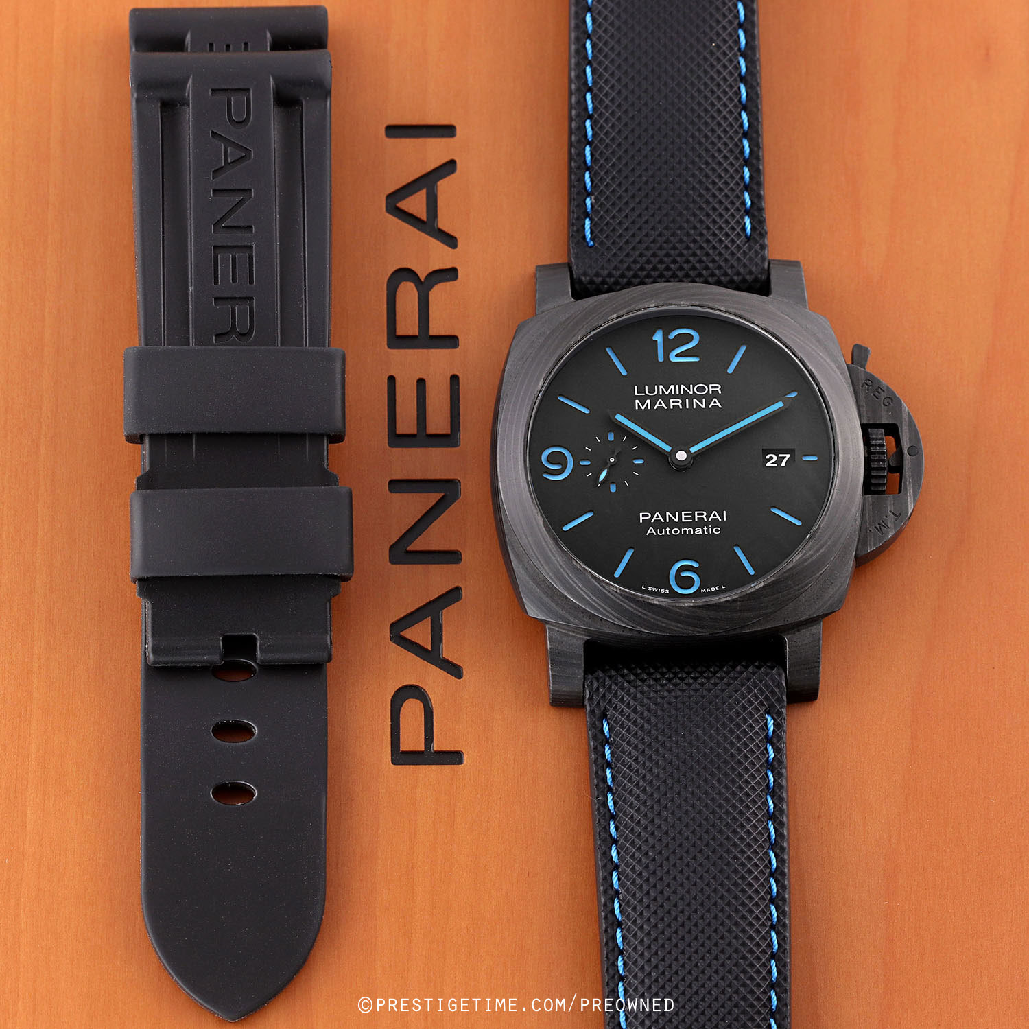 - Delivered with an additional Panerai branded rubber strap. The strap is in excellent overall condition, with the majority of its wear-lifespan remaining. We would grade the strap as in 97% condition.