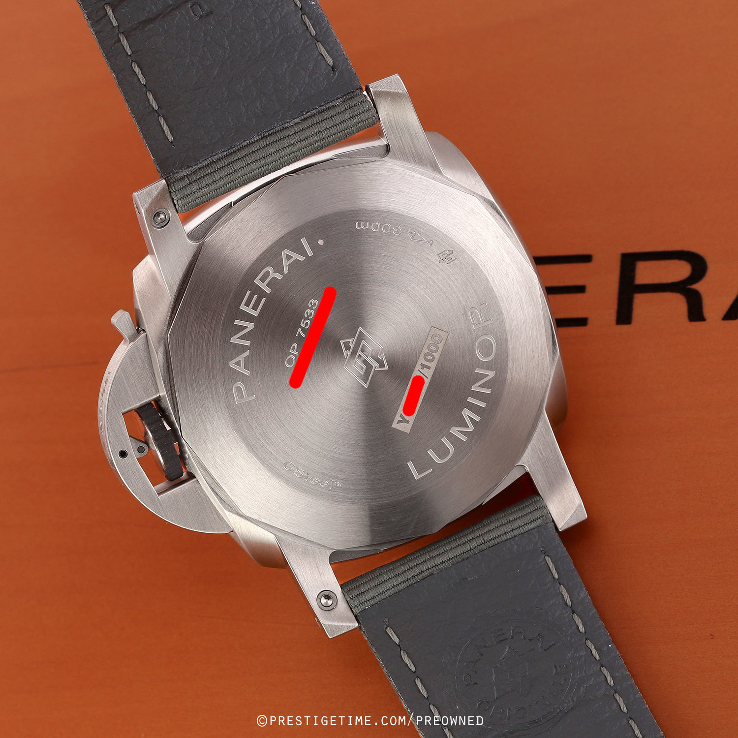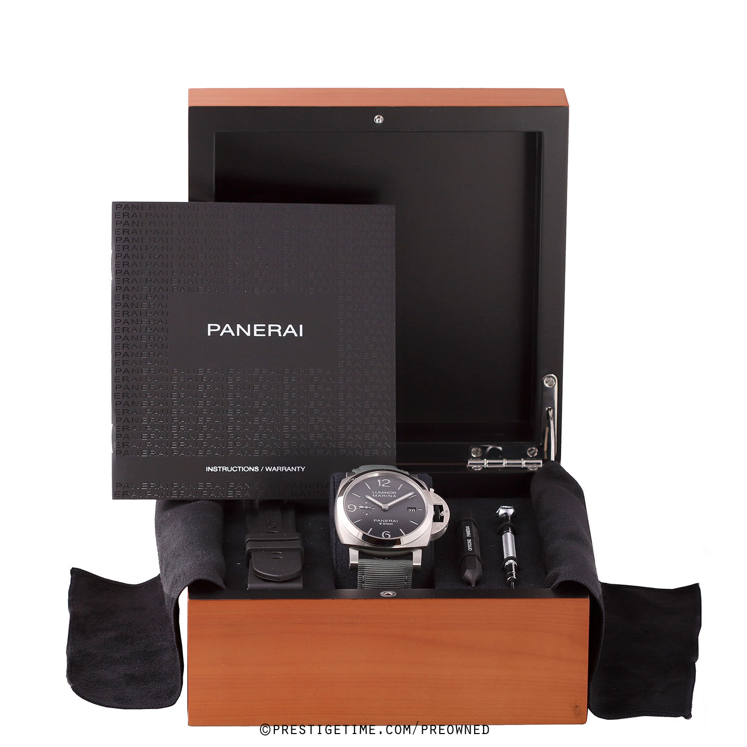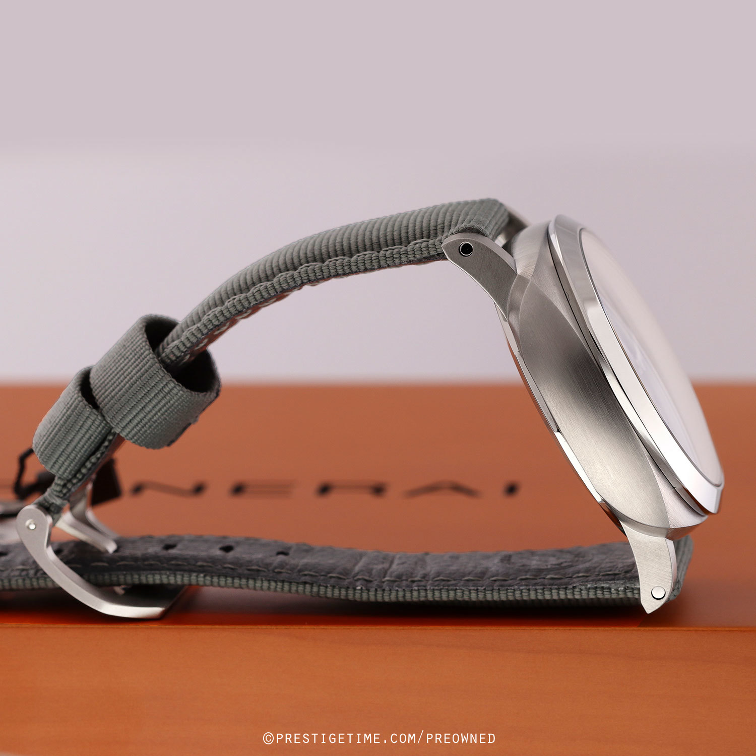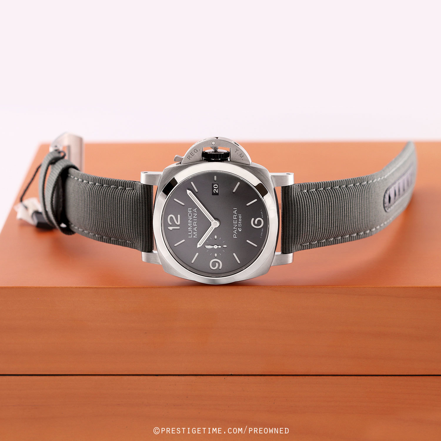 - Fitted on its original Panerai recycled PET grey rubberized strap with a stainless steel tang buckle. This strap is in new & unworn condition with its full wear lifespan remaining. This