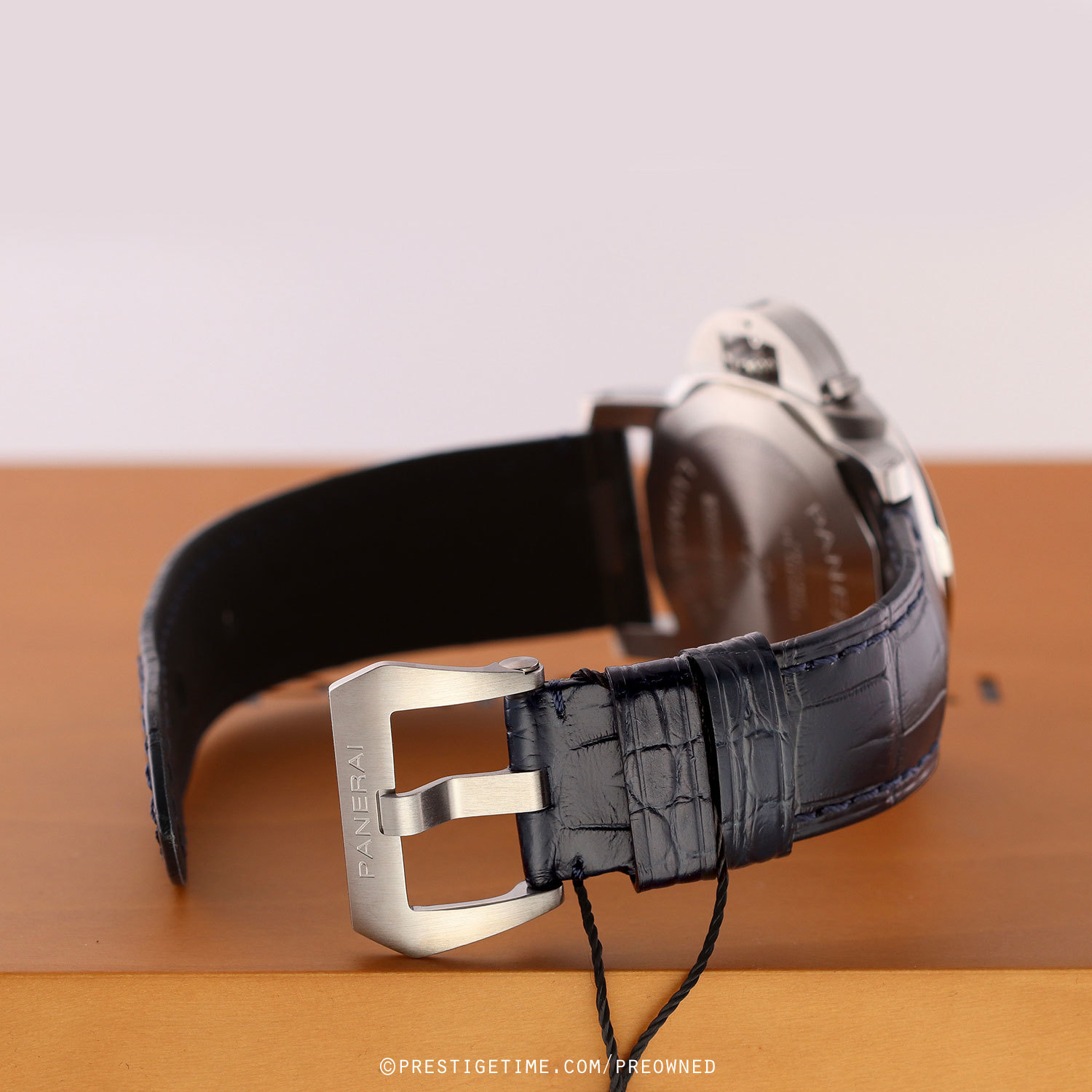- Fitted on its original Panerai alligator leather strap with a stainless steel tang buckle. This strap is in new & unworn condition with its full wear lifespan remaining.