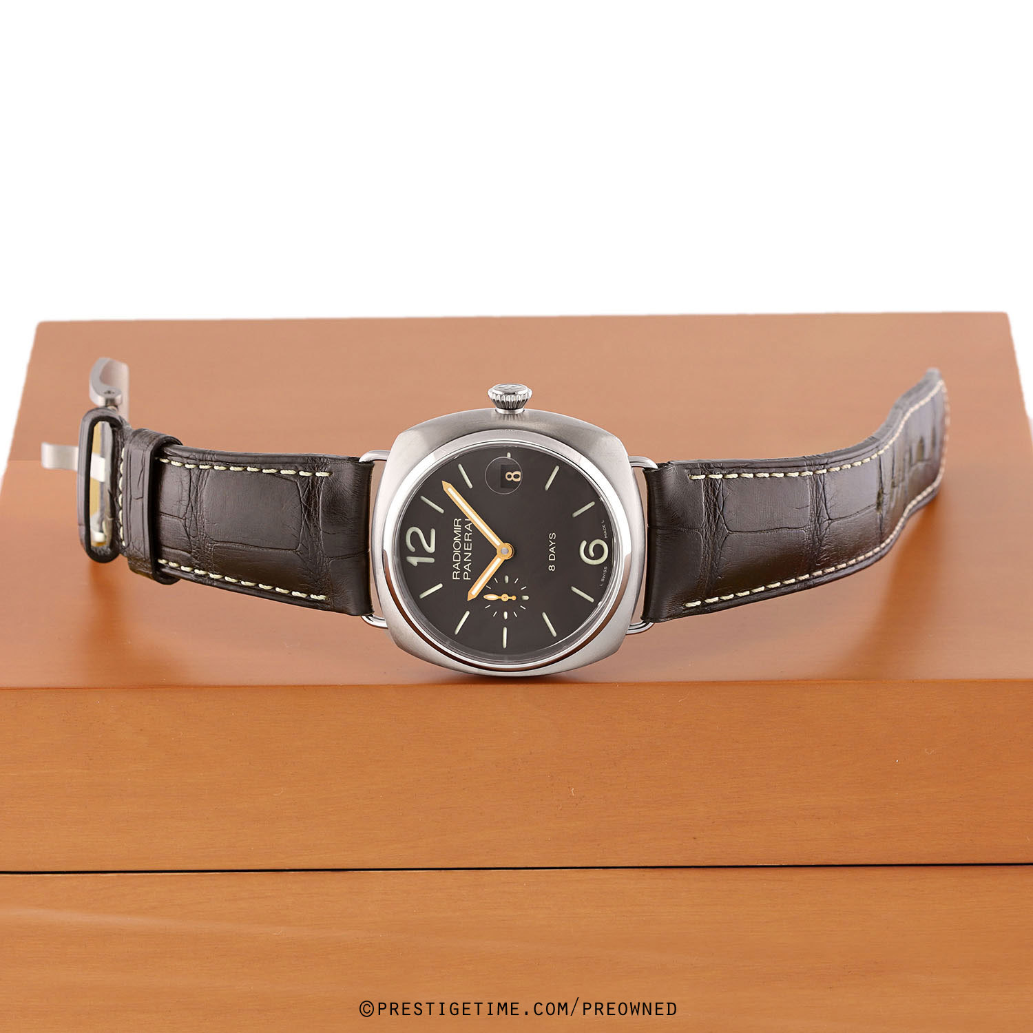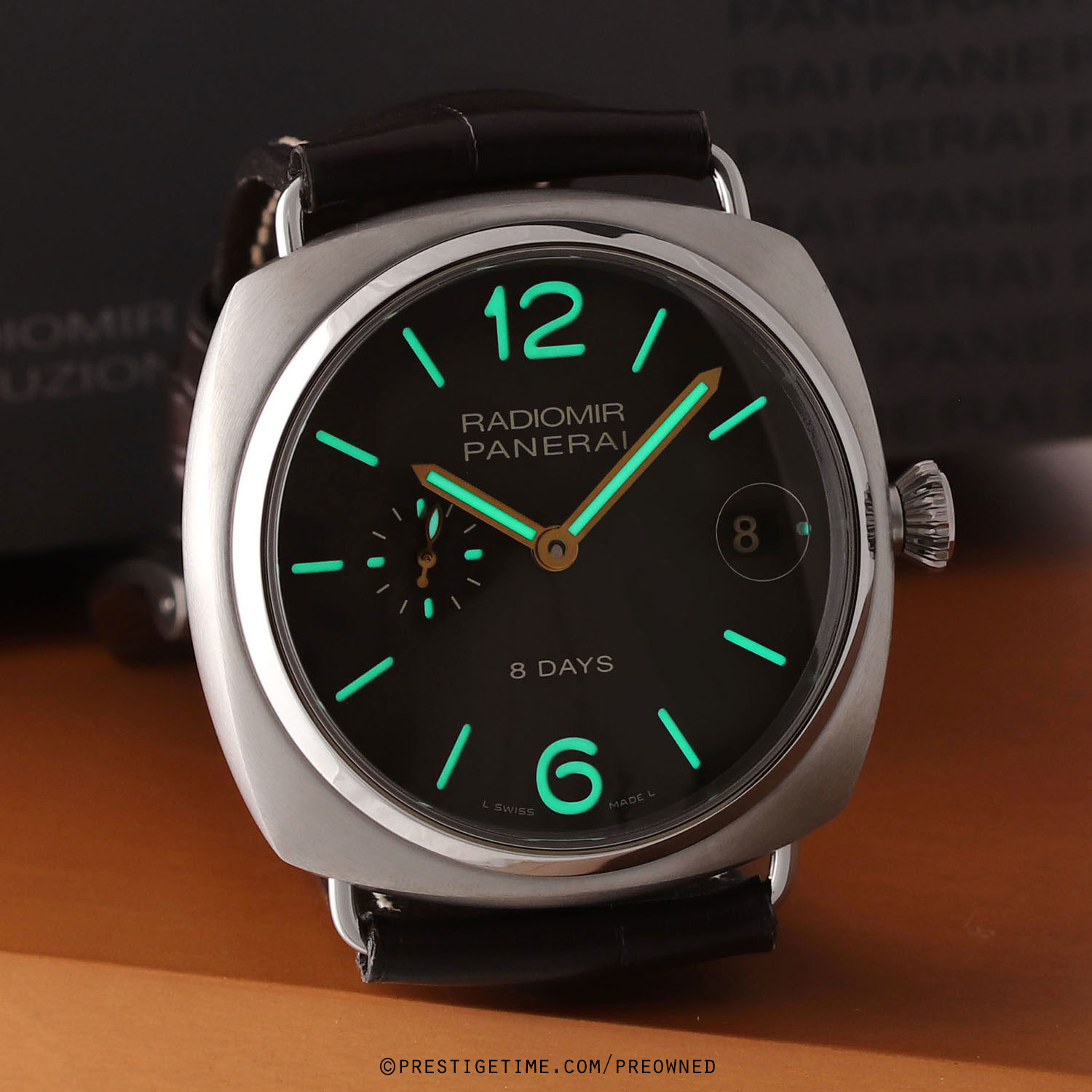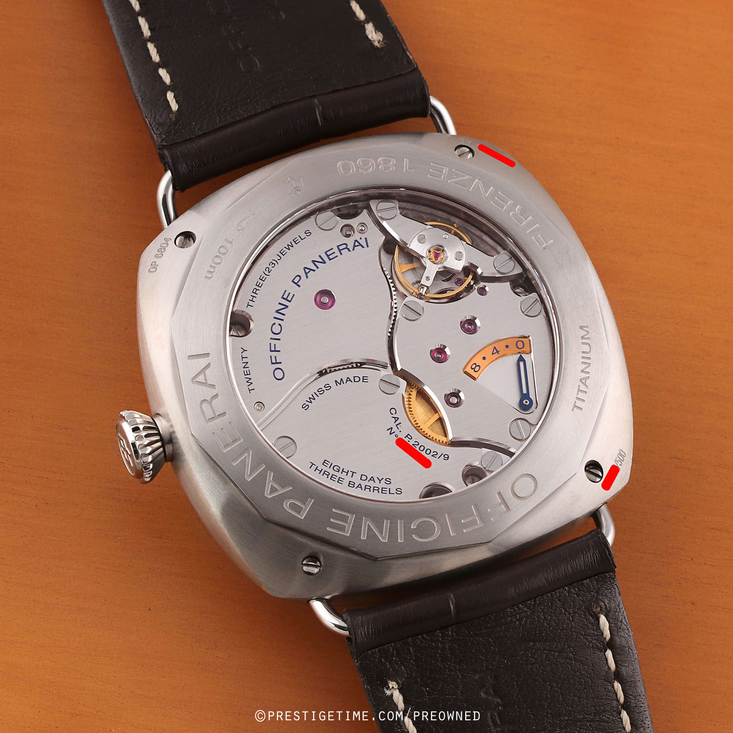 Movement: Powered by a Panerai in-house hand-wound caliber P.2002/9, beats at 28,800 vph (4Hz), contains 23 jewels & has an impressive power reserve of 8 days.