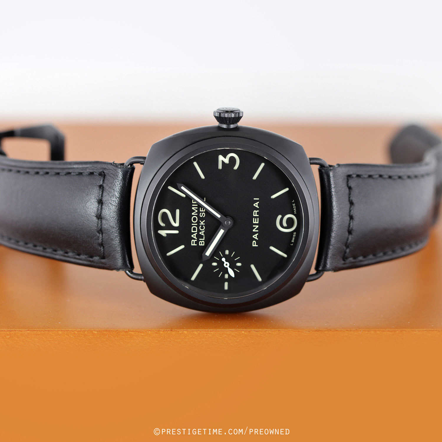 Case: Matte black ceramic case. Black PVD coated case back. Matte black 'sandwich' dial. the sandwich construction dial features cut-out indications & luminous backing. Small seconds sub-dial at 9 o'clock. Black hands with luminous fill.