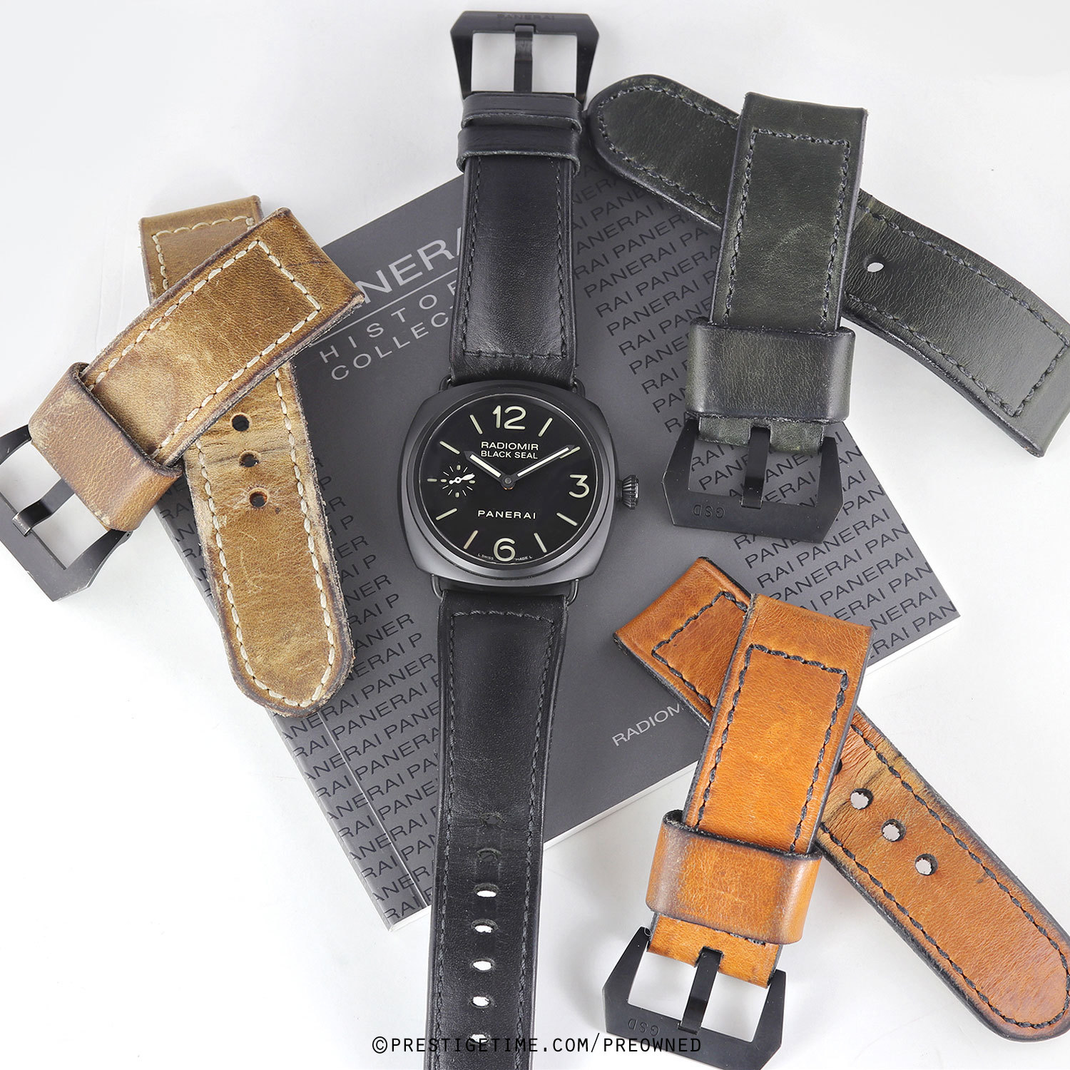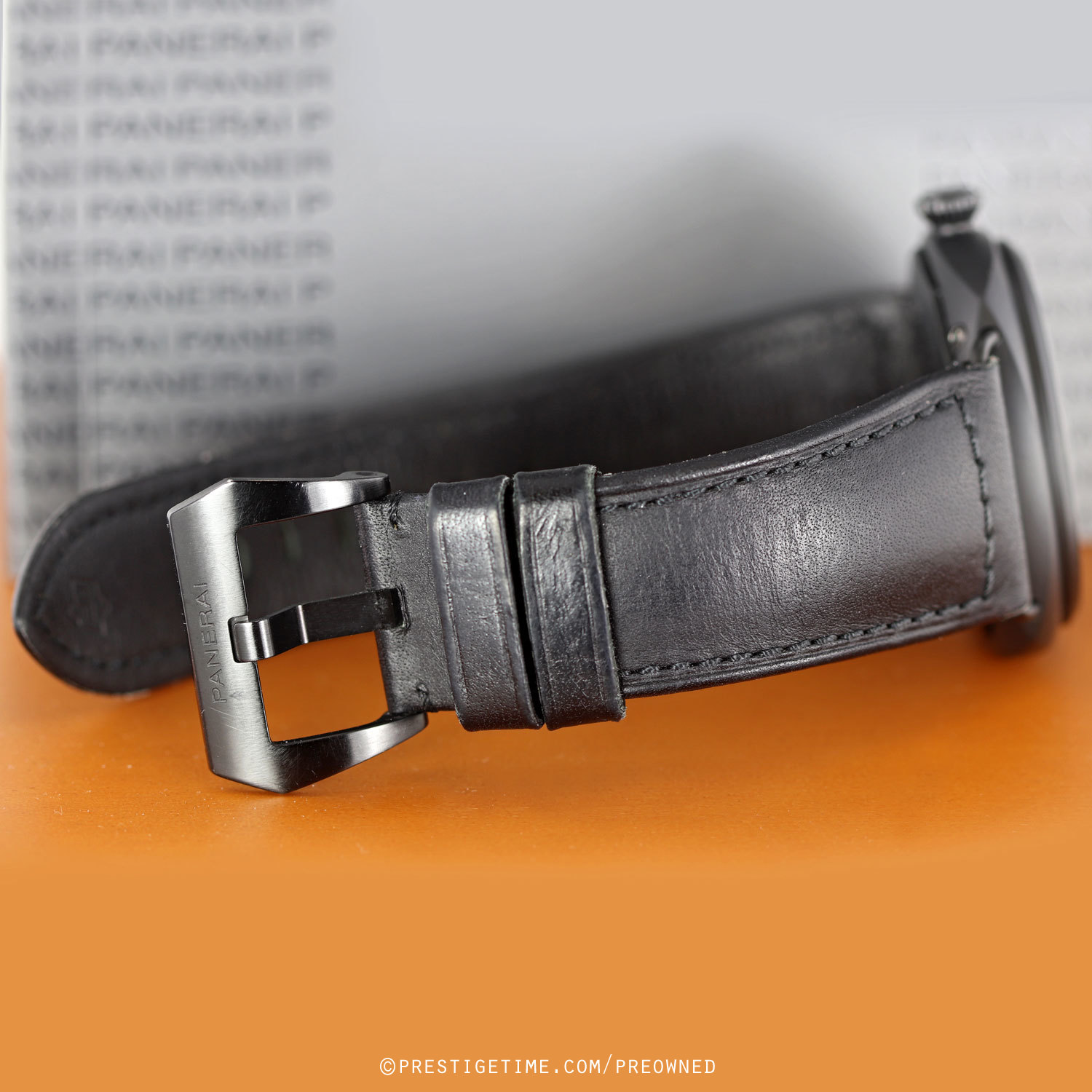 Strap: Fitted on its original black calfskin strap with a black PVD coated signed PANERAI buckle. The original strap is in fair condition (+/-80%) with plenty of wear time remaining. Included are 3 different color aftermarket Greg Stevens Designs strap, all strap are in fair condition (+/-85%) with plenty of wear time remaining.