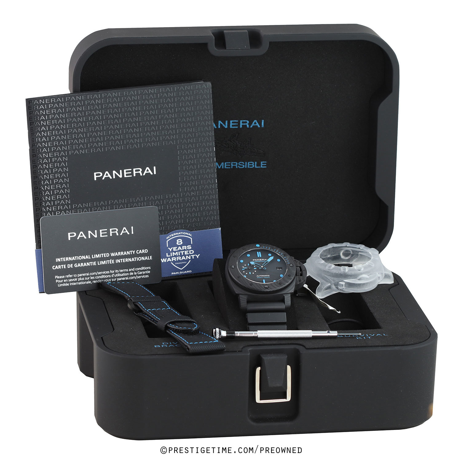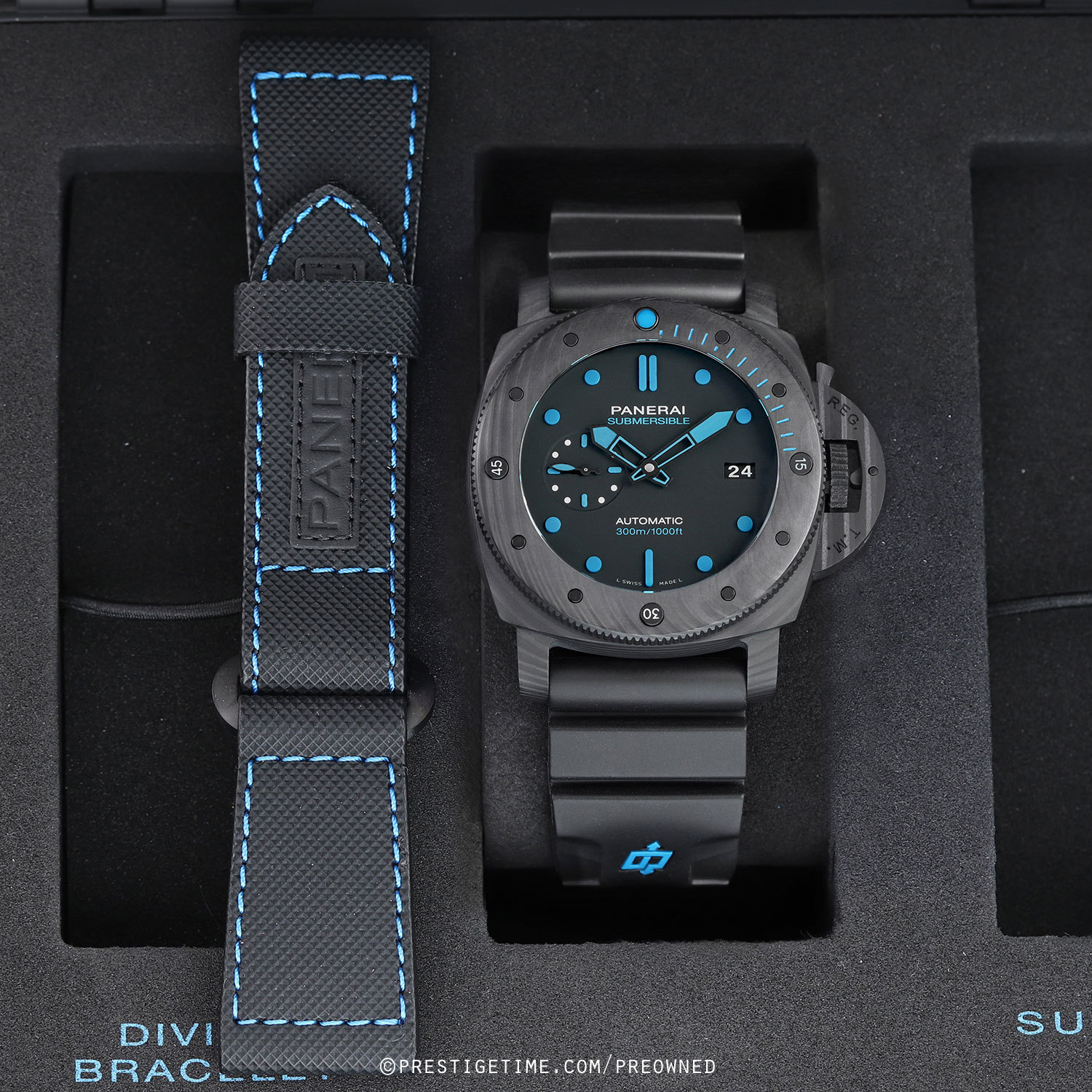 - Included is an additional Panerai original black Sportech velcro strap with matching blue stitching. The strap is new & unworn with its full wear lifespan remaining.